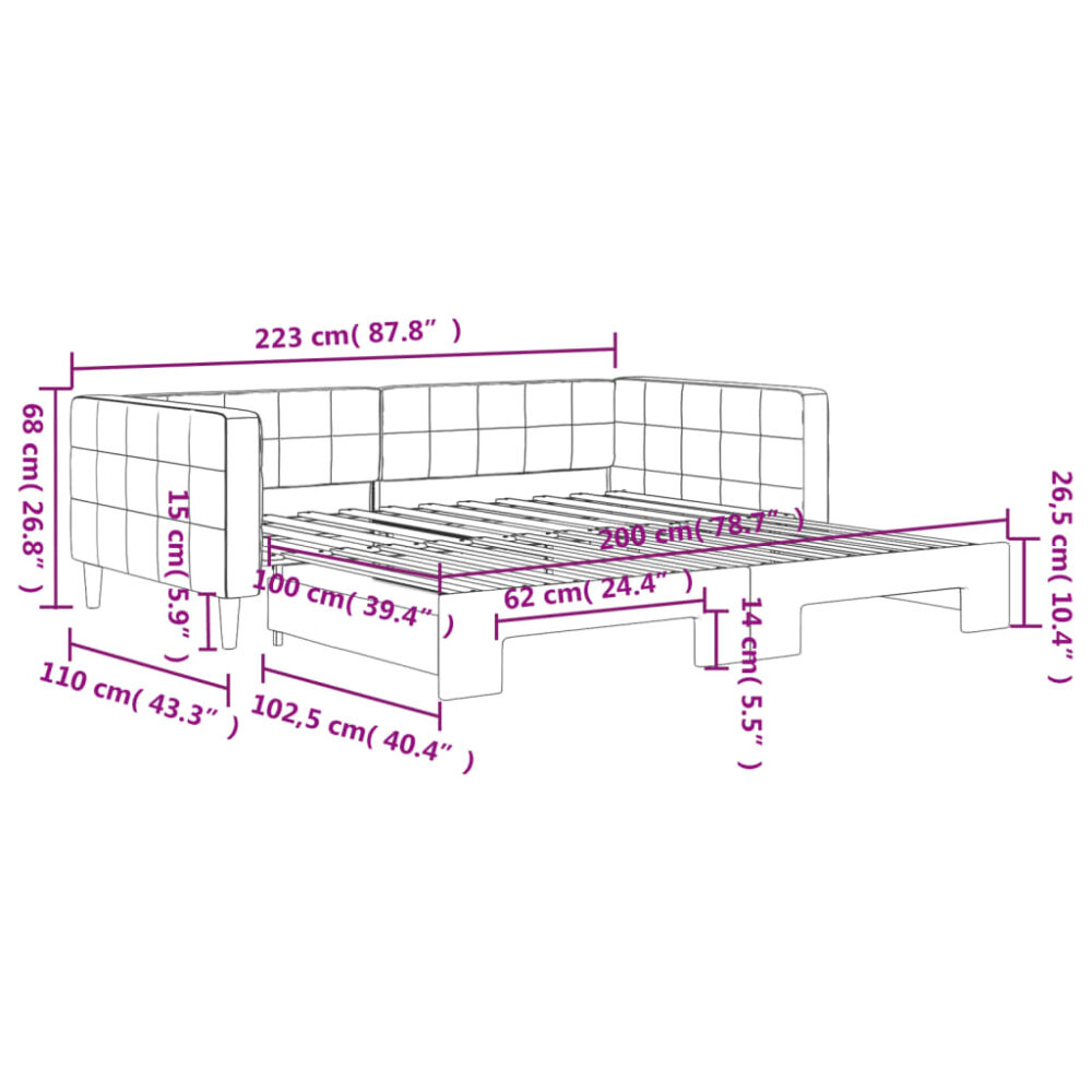 Este sofá-cama 2 em 1 com gavetão, que pode ser utilizado como um sofá ou como uma cama, é um complemento prático e atraente para a sua sala de estar ou quarto. Sofá-cama versátil: o sofá-cama funciona como um sofá durante o dia e converte-se facilmente numa cama de casal à noite puxando simplesmente o gavetão. Proporciona assim uma solução conveniente para acolher hóspedes e maximizar o espaço.Veludo macio e construção sólida: este sofá-cama possui uma estrutura resistente feita de madeira e metal e foi estofado com um veludo macio e confortável.Design moderno: o sofá-cama apresenta um design moderno com linhas lisas, uma aparência minimalista e luz natural que complementará o seu interior com um estilo moderno! Útil saber:Os colchões não estão incluídos nesta cama. Oferecemos uma variada seleção de colchões. Pode consultar a nossa loja para encontrar os colchões correspondentes.