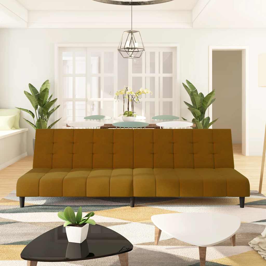 Sofá-cama de 2 lugares veludo castanho - PORTES GRÁTIS