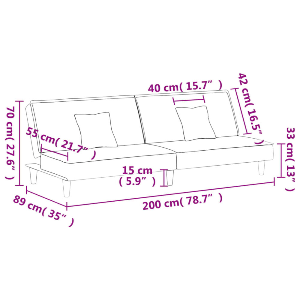 Este sofá-cama é perfeito para acomodar hóspedes durante a noite, oferecendo ao mesmo tempo um espaço de estar confortável durante o dia. Material durável: o tecido apresenta um aspeto simples e liso, sendo também respirável e durável. Encosto ajustável: pode empurrar os dois almofadões separados do sofá-cama para trás, parcialmente, ou completamente para baixo para criar um local ideal para uma soneca ou uma cama de solteiro. Experiência de assento confortável: o sofá é altamente confortável com os assentos e encostos espessamente acolchoados. Almofadas práticas: estas almofadas não só renovarão a sua decoração, como também acrescentarão um conforto extra quando se sentar ou deitar.Estrutura robusta e estável: a estrutura de contraplacado do sofá-cama assegura resistência e estabilidade.