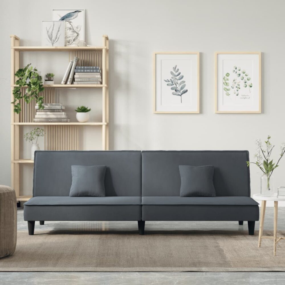 Sofá-cama veludo cinzento-escuro - PORTES GRÁTIS