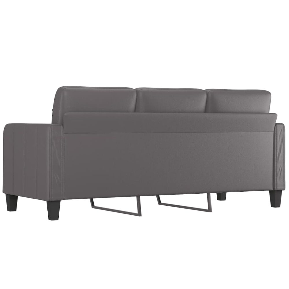 Este sofá de 3 lugares é um excelente lugar para conversar, ler, ver televisão ou apenas relaxar. Destina-se a ser um ponto focal em sua casa. Couro artificial durável: o couro artificial de alta qualidade é um material altamente durável. É resistente a manchas, sendo fácil de limpar com um pano húmido. A superfície suave concede-lhe também um aspeto luxuoso e a beleza do couro genuíno.Estrutura robusta e estável: a estrutura de metal do sofá lounge assegura robustez e estabilidade.Experiência de assento confortável: o sofá é altamente confortável com os assentos, apoios de braços e almofadas de encosto espessamente acolchoados.Design apelativo: com um design simples, mas moderno, este sofá destina-se a ser um destaque na sua divisão.
