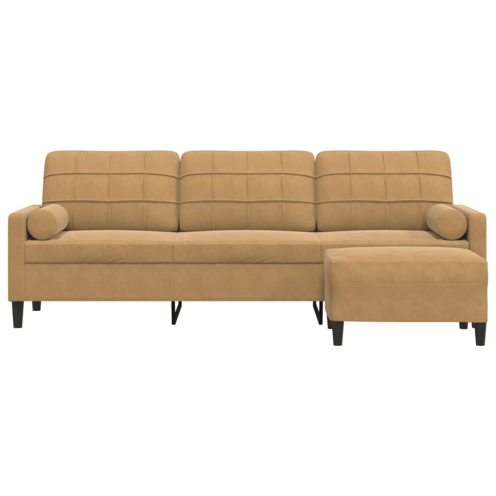 Sofá de 3 lugares com apoio de pés 210 cm veludo castanho - PORTES GRÁTIS