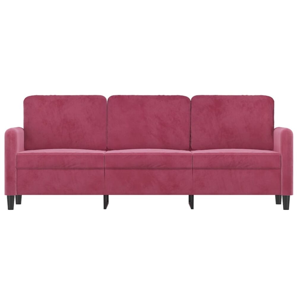 Sofá de 3 lugares veludo 180 cm vermelho tinto - PORTES GRÁTIS