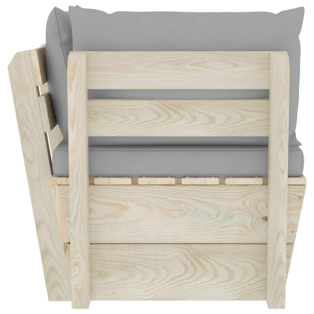 O sofá de exterior é feito em madeira de abeto impregnada, tornando-o durável e estável. Este sofá de canto possui uma construção sólida e requer pouca manutenção. Graças ao estofamento em 100% poliéster e acolchoamento espesso, os almofadões são macios e proporcionam o máximo conforto. É ideal para noites de cinema em família, jogar jogos e aproveitar o clima na varanda. Este assento de pátio também possui um design modular, tornando-o completamente flexível e fácil de deslocar, para se adequar a qualquer ambiente. Pode combiná-lo com outros segmentos modulares e criar o seu próprio ambiente lounge no jardim, de acordo com o seu gosto!