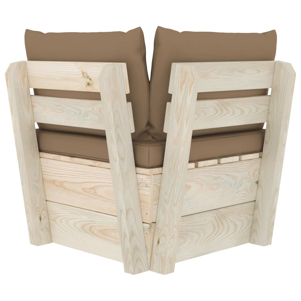 O sofá de exterior é feito em madeira de abeto impregnada, tornando-o durável e estável. Este sofá de canto possui uma construção sólida e requer pouca manutenção. Graças ao estofamento em 100% poliéster e acolchoamento espesso, os almofadões são macios e proporcionam o máximo conforto. É ideal para noites de cinema em família, jogar jogos e aproveitar o clima na varanda. Este assento de pátio também possui um design modular, tornando-o completamente flexível e fácil de deslocar, para se adequar a qualquer ambiente. Pode combiná-lo com outros segmentos modulares e criar o seu próprio ambiente lounge no jardim, de acordo com o seu gosto!