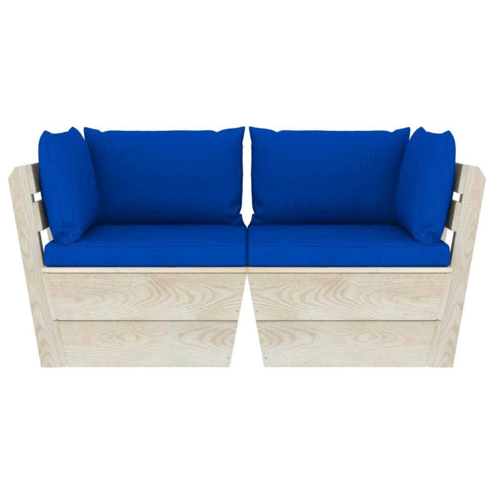 O sofá de exterior é feito em madeira de abeto impregnada, tornando-o durável e estável. Este sofá possui uma construção sólida e requer pouca manutenção. Graças ao estofamento em 100% poliéster e acolchoamento espesso, os almofadões são macios e proporcionam o máximo conforto. É ideal para noites de cinema em família, jogar jogos e aproveitar o clima na varanda.