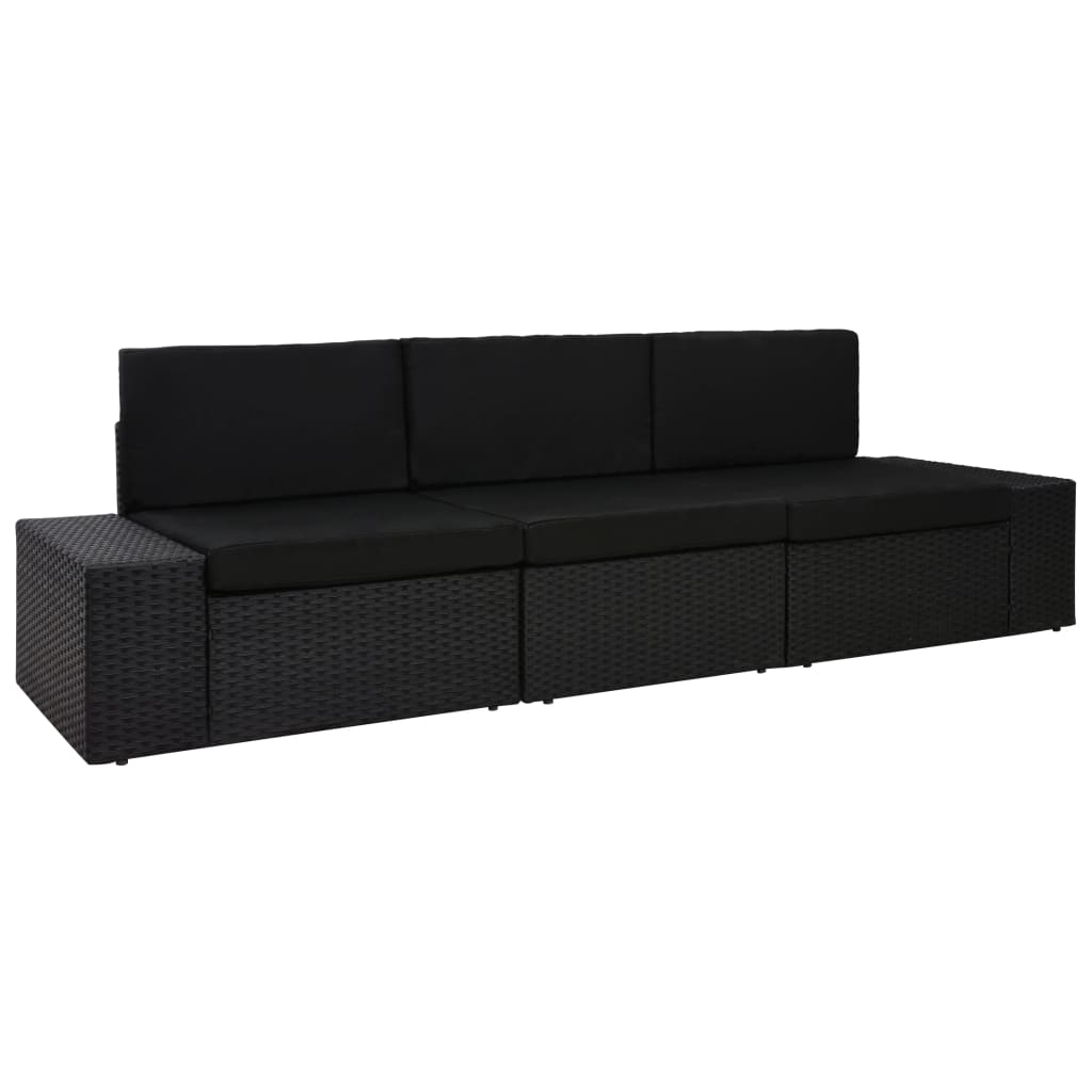 Sofá seccional de 3 lugares vime PE preto - PORTES GRÁTIS