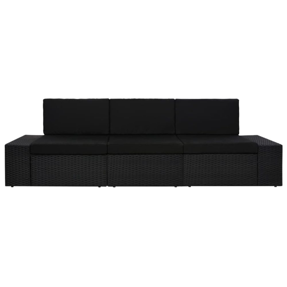 Sofá seccional de 3 lugares vime PE preto - PORTES GRÁTIS