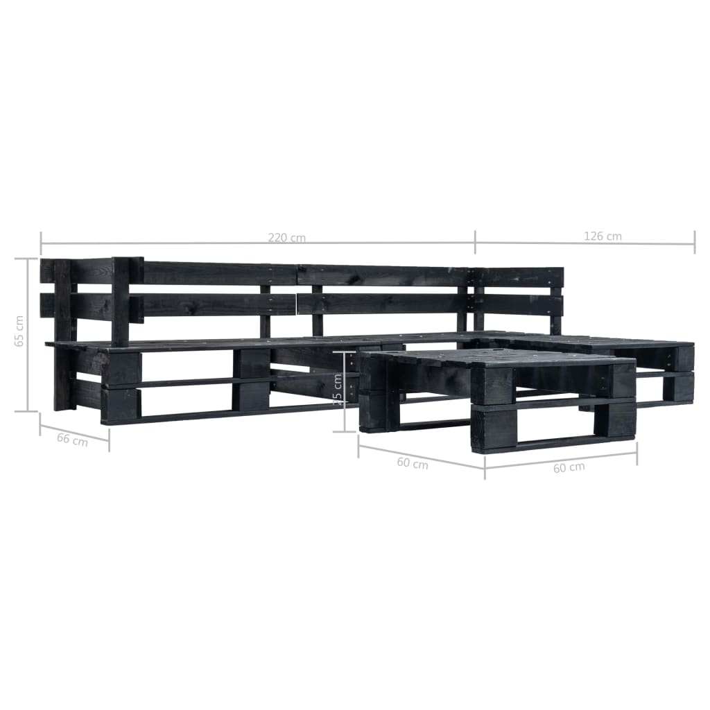 Sofás de paletes para jardim 4 pcs madeira FSC preto - PORTES GRÁTIS