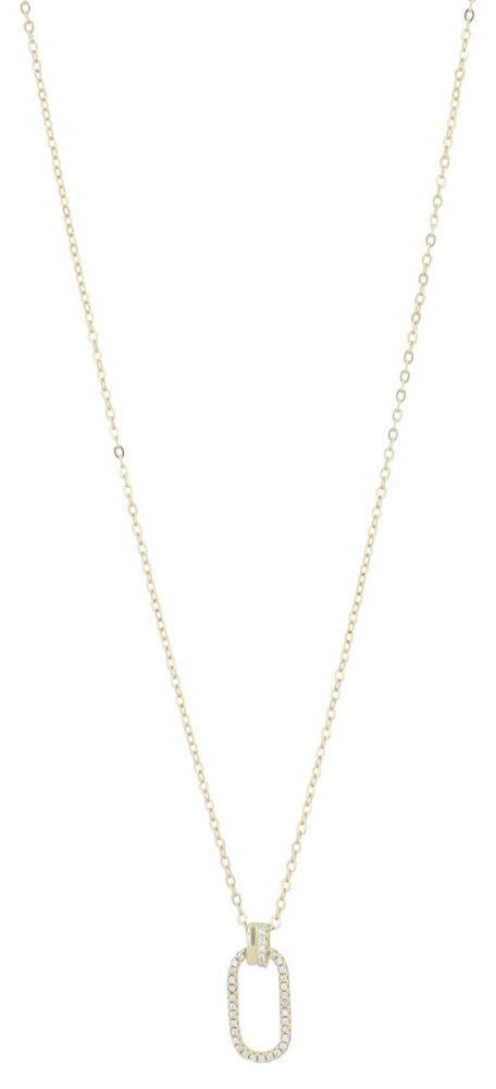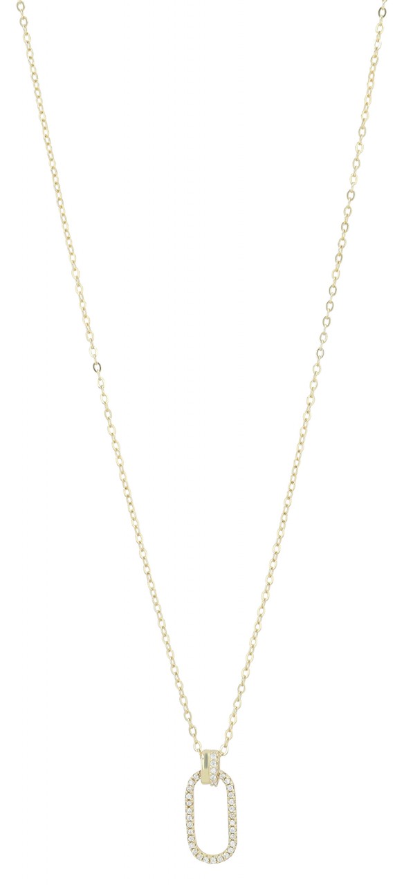 Solomia é um colar com um pendente em prata verdadeira 925, elegante e moderno. Disponível nas versões prateada com banho de ródio ou dourada, esta peça de joalharia pode ser adaptada a qualquer visual. Com um comprimento de 42 cm e uma extensão adicional de 3 cm, a corrente pode ser personalizada e é extremamente confortável de usar. O pendente, um elemento oval aberto (16 x 8,5 mm), é cravejado de zircónias brilhantes e confere ao colar um toque de luxo. O ilhó móvel, também decorado com zircónias, complementa na perfeição o pendente e dá-lhe um comprimento total de 1,9 cm. O fecho de lagosta permite um manuseamento fácil. Quer seja para uso quotidiano ou como destaque em ocasiões especiais…