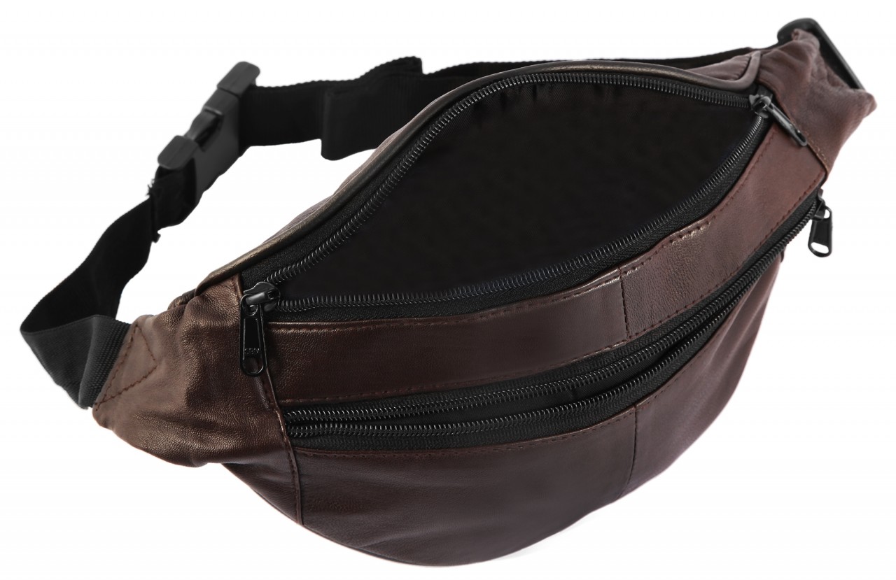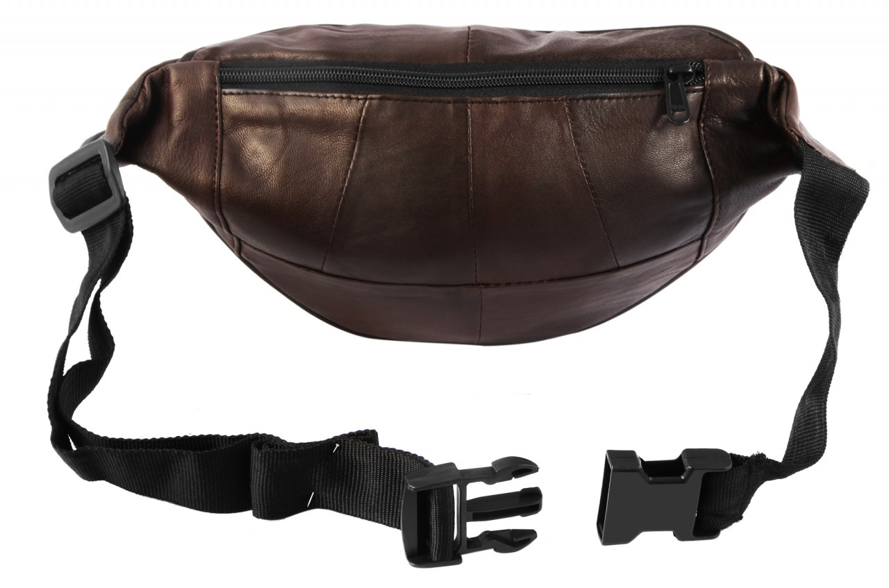 A moderna bolsa de quadril da Steinmeister é feita de couro genuíno e tem uma superfície lisa. Pode ser colocado confortavelmente ao redor dos quadris com um cinto preto resistente feito de poliéster e aberto e fechado com uma fivela de plástico preta. A pulseira tem 3 cm de largura e pode ser ajustada para um comprimento mínimo de 60 cm e máximo de 100 cm. A bolsa de quadril possui três compartimentos grandes, todos abertos com um zíper preto. O compartimento principal central pode ser operado de ambos os lados com uma aba dupla. O segundo compartimento frontal está localizado um pouco mais baixo e um pouco menor que o compartimento principal. O terceiro compartimento está localizado na parte traseira e oferece espaço suficiente para objetos de valor que ficam diretamente sobre o corpo quando usados. As dimensões da bolsa de quadril da moda consistem em comprimento de 17 cm, 36 cm de largura e 1,5 cm de profundidade.