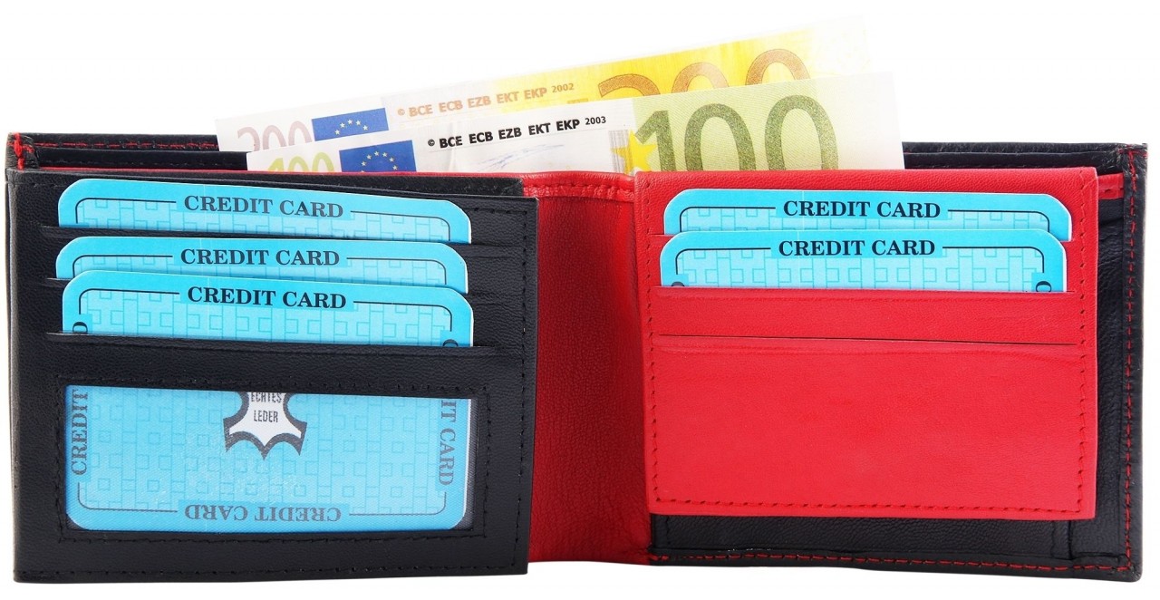 A carteira masculina da marca Steinmeister foi confeccionada em formato paisagem em couro genuíno. Tem comprimento de 9,5 cm, largura de 12,1 cm e espessura do material de 2,5 cm quando não preenchido. A bolsa impressiona pelo design simples e pela capacidade de armazenar documentos importantes. Graças à divisão confortável, possui 2 compartimentos para notas, 1 compartimento para moedas com compartimento para ficha de compras, 11 compartimentos para cartões de crédito, 2 compartimentos transparentes para identificação e 2 bolsos deslizantes. A carteira é um ótimo acessório para ele e é ideal como presente.