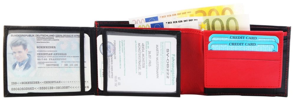 A carteira masculina da marca Steinmeister foi confeccionada em formato paisagem em couro genuíno. Tem comprimento de 9,5 cm, largura de 12,1 cm e espessura do material de 2,5 cm quando não preenchido. A bolsa impressiona pelo design simples e pela capacidade de armazenar documentos importantes. Graças à divisão confortável, possui 2 compartimentos para notas, 1 compartimento para moedas com compartimento para ficha de compras, 11 compartimentos para cartões de crédito, 2 compartimentos transparentes para identificação e 2 bolsos deslizantes. A carteira é um ótimo acessório para ele e é ideal como presente.
