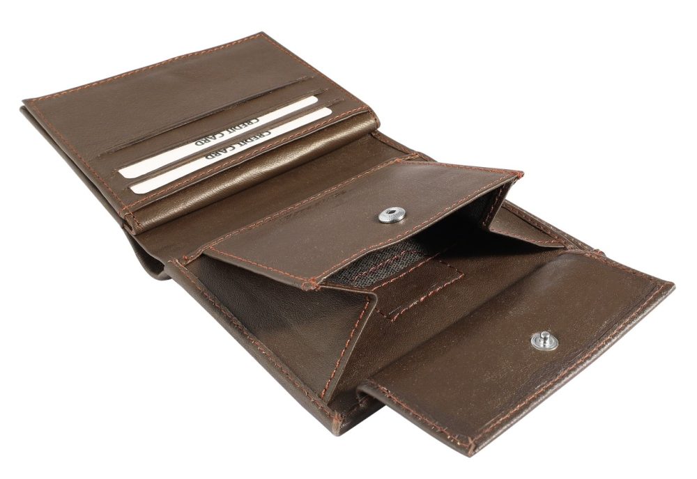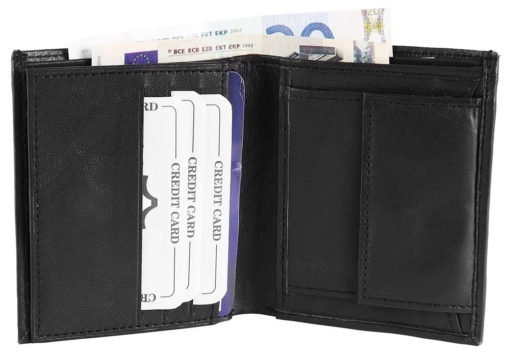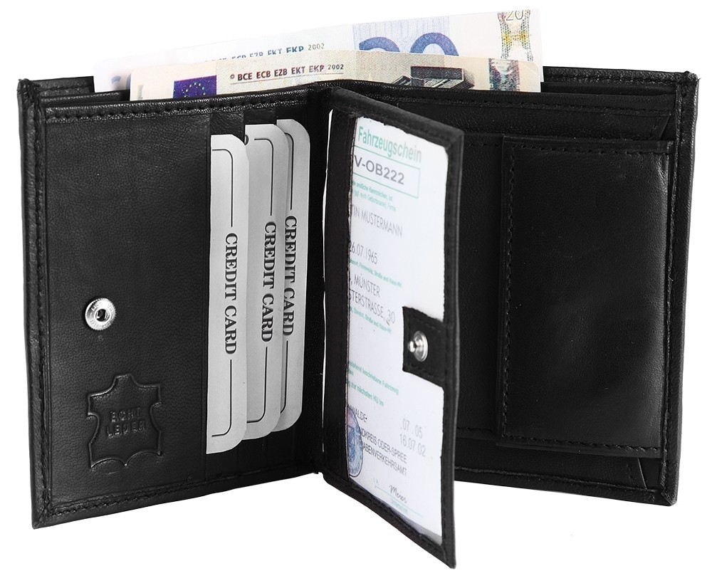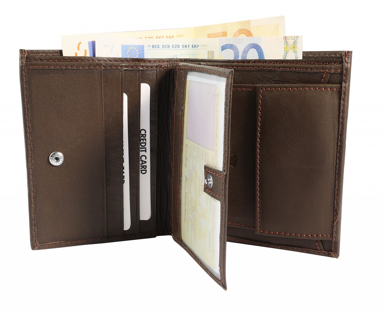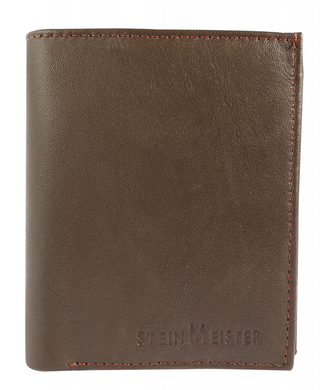A carteira masculina da marca Steinmeister foi confeccionada em formato retrato em couro genuíno. Tem comprimento de 11,6 cm, largura de 9,4 cm e espessura do material de 2,2 cm quando não preenchido. A bolsa impressiona pelo design simples e pela capacidade de armazenar documentos importantes. Graças à divisão confortável, possui 2 compartimentos para notas, 1 compartimento para moedas com chip de compras e fecho de botão de pressão, 6 compartimentos para cartões de crédito, 1 compartimento transparente para identificação e 3 bolsos deslizantes. A carteira é um ótimo acessório para ele e é ideal como presente.