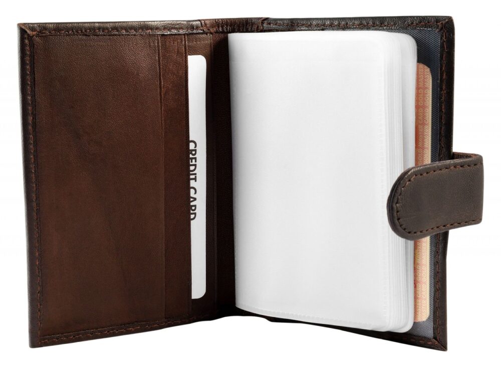 O porta-cartões em formato retrato da marca Steinmeister é feito de couro genuíno. O organizador de cartões também possui 3 compartimentos para cartões de crédito, 1 compartimento transparente para identificação e 16 compartimentos transparentes para cartões, que são fixados no meio com uma costura simples e garantem uma divisão organizada. Graças ao design plano, o estojo de couro pode ser guardado em qualquer lugar e ainda oferece espaço suficiente para guardar objetos de valor com segurança e organização quando estiver em trânsito. As dimensões da caixa do cartão são 11 cm de comprimento, 7,5 cm de largura e 1,5 cm de espessura. Este organizador não só é super prático, como também é um excelente presente para quem você ama. É o companheiro ideal, seja em viagem, no dia a dia ou numa reunião de negócios.