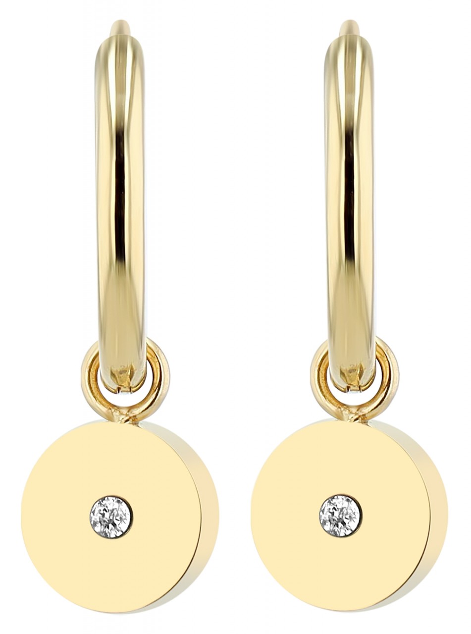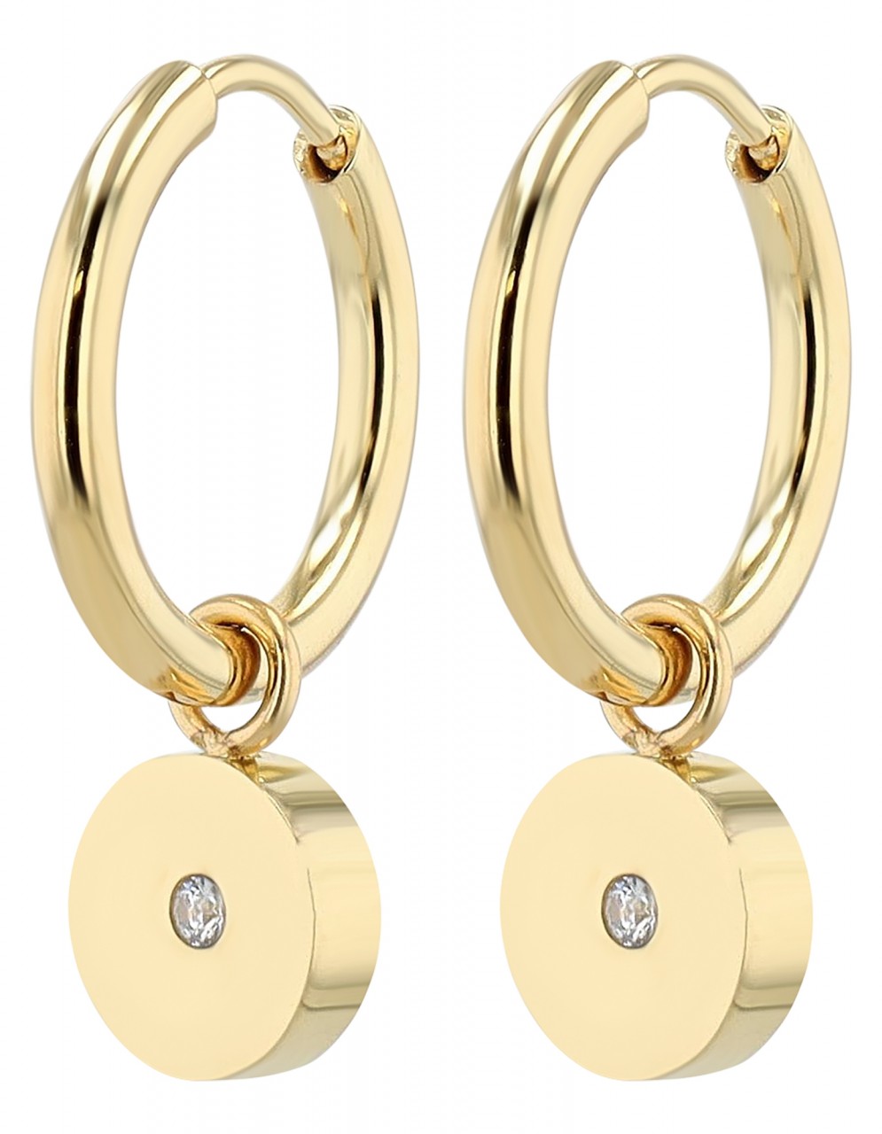 Stintje – um creole duas versões Feito de aço inoxidável de alta qualidade, o creole é uma óptima peça de joalharia básica e pode ser usado em qualquer ocasião. O diâmetro interior do berloque é de 12 mm e tem uma espessura de 2 mm. Quer algo especial? Então, use o creole com o pendente amovível. Uma placa redonda de Ø 8 mm, com uma espessura de 2,5 mm, decorada com uma pedra similite no centro. Pode tornar esta peça de joalharia ainda mais pessoal, gravando-a no verso. O comprimento total com o pendente é de 2,5 cm. O fecho dobrável oferece uma fixação segura e um ajuste confortável. Escolha entre as duas versões, prateada e dourada, e use o creole no dia a dia, numa festa ou numa ocasião especial.