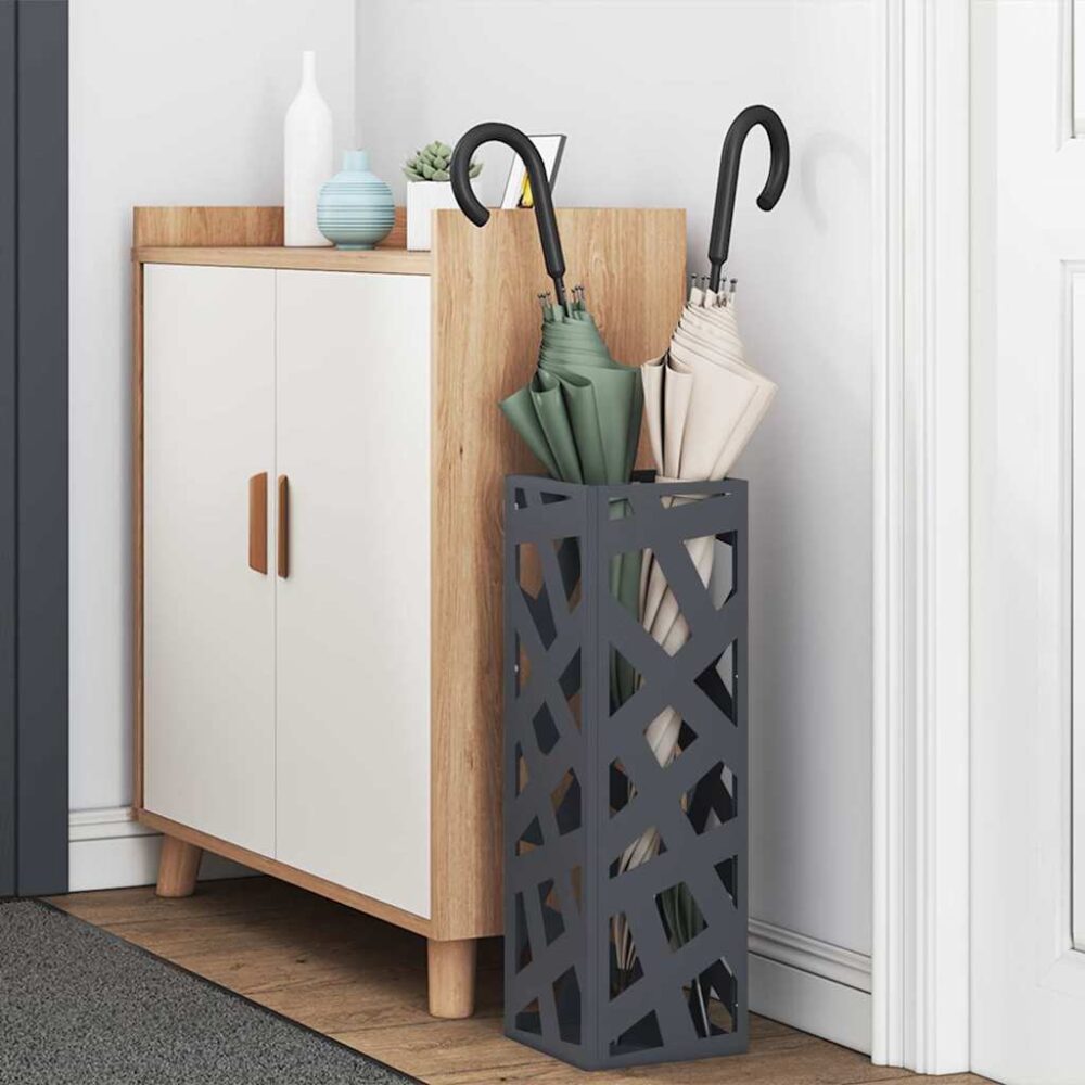 Este suporte para guarda-chuva traz um toque de classe a qualquer corredor com o seu acabamento antracite marcante. Foi desenhado para acomodar guarda-chuvas de todos os tamanhos, mantendo a entrada organizada e arrumada, enquanto os padrões decorativos criam uma atmosfera acolhedora. Capacidade de Armazenamento: Vem com um compartimento para mais do que só guarda-chuvas, tornando-o super prático em corredores modernos. Design Estiloso: O acabamento antracite e o padrão geométrico decorativo combinam bem com a decoração contemporânea, dando um toque de estilo a qualquer espaço. Economia de Espaço: A forma retangular é ideal para áreas compactas, ajudando a aproveitar melhor as pequenas entradas sem deixar tudo bagunçado. Durabilidade: Feito em aço de alta qualidade, este suporte para guarda-chuva é resistente e segura o desgaste do dia-a-dia, tornando-se uma peça duradoura para a casa. Fácil de Limpar: O acabamento mate revestido a pó requer pouca manutenção; basta passar um pano seco para mantê-lo sempre bonito.