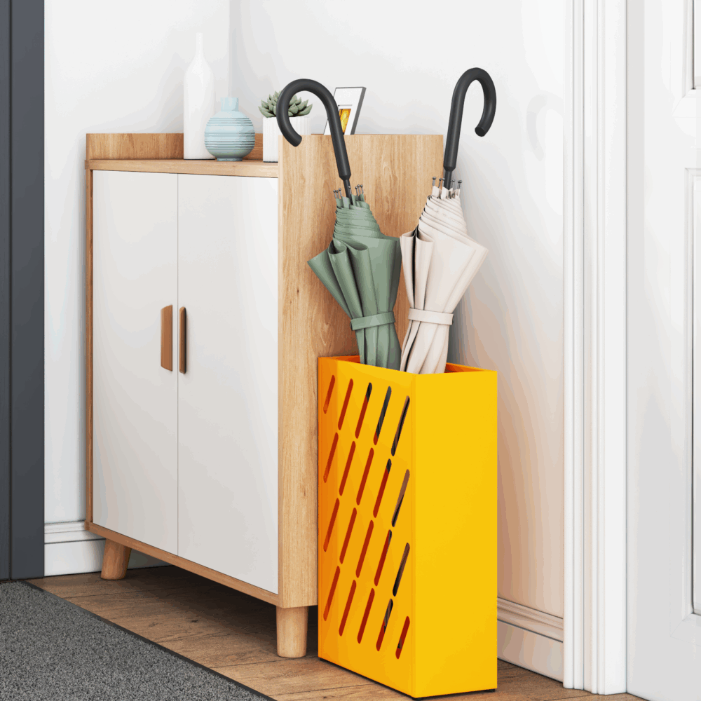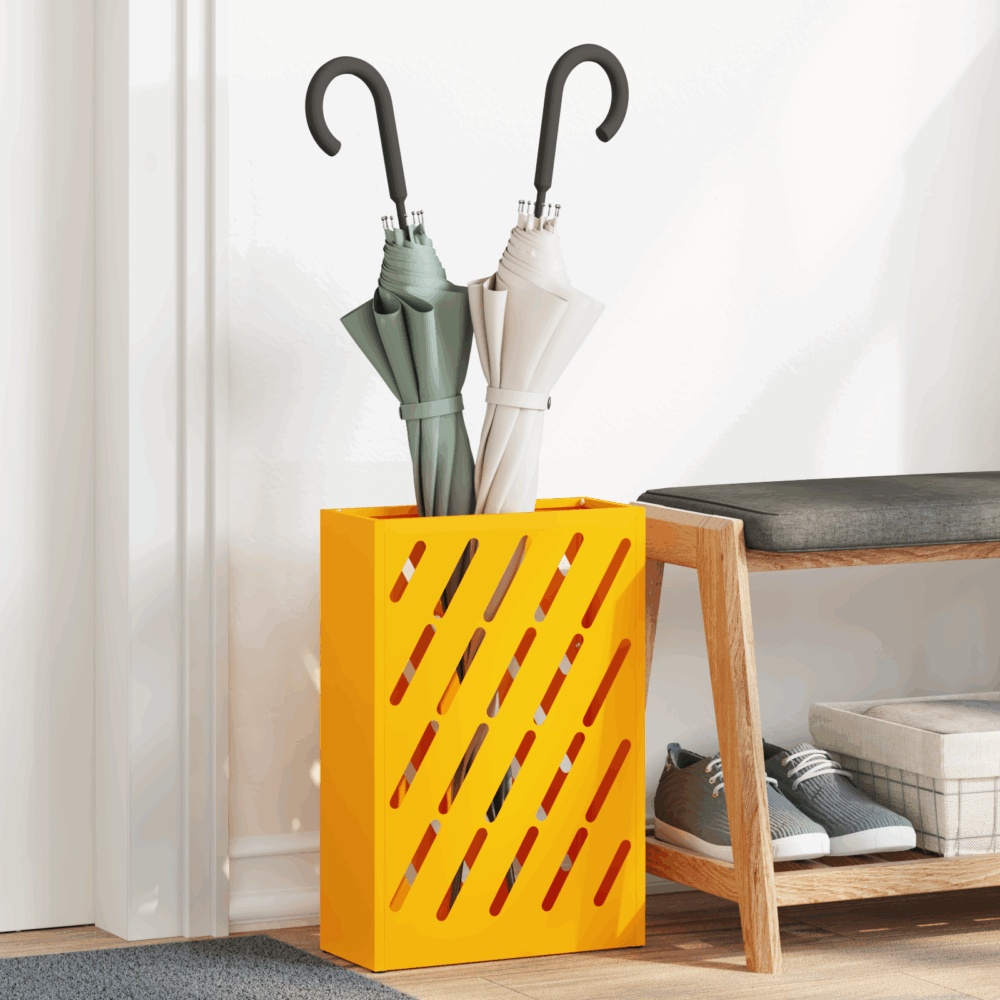Este Suporte Moderno para Guarda-chuva é uma solução prática e inteligente para a entrada, mantendo guarda-chuvas molhados organizados e sem complicação. A forma retangular e o acabamento em metal mostarda combinam de forma harmoniosa com diferentes estilos de decoração enquanto oferecem armazenamento útil para outras coisas. Espaço Grande: O suporte para guarda-chuva tem um compartimento grande, ideal para manter guarda-chuvas e outras coisinhas organizadas. Design Legal: Com seu padrão geométrico de linhas diagonais, este suporte traz cor e um toque moderno, além de ser prático. Construção Resistente: Feito de metal de qualidade, é estável e durável, mesmo com uso cotidiano. Uso Interno: Destinado a espaços internos, melhora a funcionalidade do corredor mantendo tudo arrumado. Manutenção Fácil: O acabamento pintado é simples de limpar com água morna e um pano, ajudando a manter a ordem.