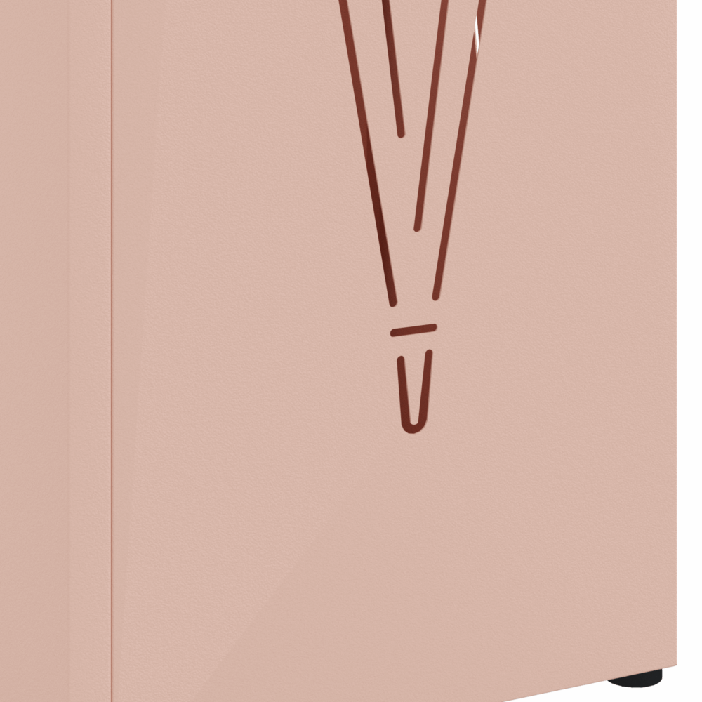 Este suporte para guarda-chuva é uma peça que se destaca em qualquer corredor. O seu bonito acabamento rosa não só é agradável aos olhos, como também cumpre uma função muito útil. Mantém vários guarda-chuvas organizados, garantindo que a entrada se mantenha arrumada e com estilo, enquanto os padrões geométricos únicos trazem uma vibe descontraída. Armazenamento Amplo: Espaço suficiente para além de guarda-chuvas, tornando-se uma adição prática para corredores modernos. Design Estiloso: O acabamento rosa e os padrões geométricos combinam perfeitamente com a decoração contemporânea, dando um toque chique a qualquer espaço. Economia de Espaço: O formato retangular é ideal para espaços reduzidos, evitando a desordem em entradas pequenas. Durabilidade: Feito de metal de alta qualidade, este suporte é resistente e foi construído para durar, assegurando que será uma adição duradoura à casa. Fácil de Limpar: O acabamento mate requer pouca manutenção; basta passar um pano húmido para que fique com boa aparência.
