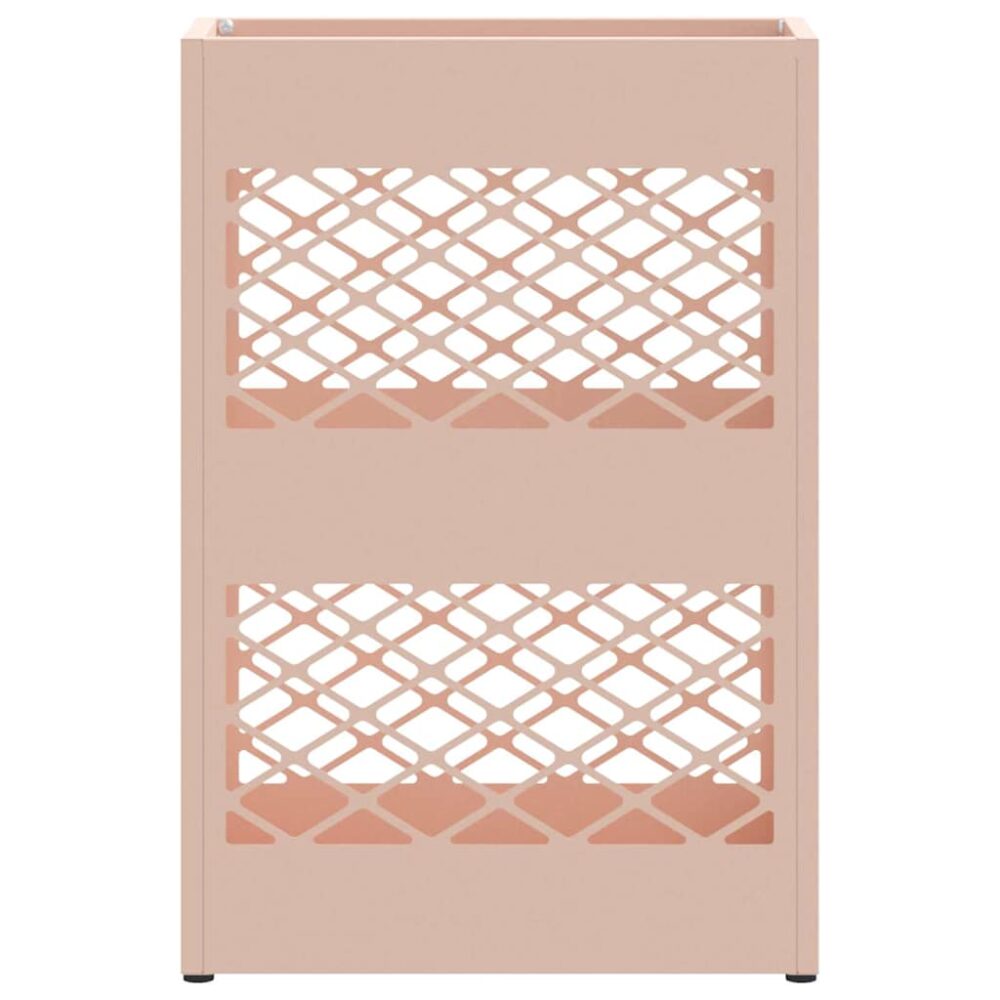 Este suporte contemporâneo para guarda-chuva é prático e estiloso para o corredor, ajudando a manter guarda-chuvas molhados organizados, sem confusão. Com um formato retangular e acabamento em metal rosa, encaixa-se bem em diferentes estilos enquanto proporciona armazenamento extra para outras coisas. Ampla Armazenagem: Este suporte tem uma prateleira de metal, oferecendo muito espaço para guarda-chuvas e outras coisas, mantendo tudo fácil de pegar. Design Estiloso: Com um padrão cruzado bonito, este suporte dá um toque de elegância e modernidade ao teu espaço enquanto cumpre a função. Construção Durável: Feito de metal de qualidade, este suporte é resistente e feito para durar no uso diário sem perder o charme. Uso Interno: Feito para interiores, é uma ótima adição ao corredor ou entrada. Fácil Manutenção: O acabamento mate não só tem uma boa aparência, mas também é fácil de limpar com um pano húmido, mantendo o espaço em ordem.