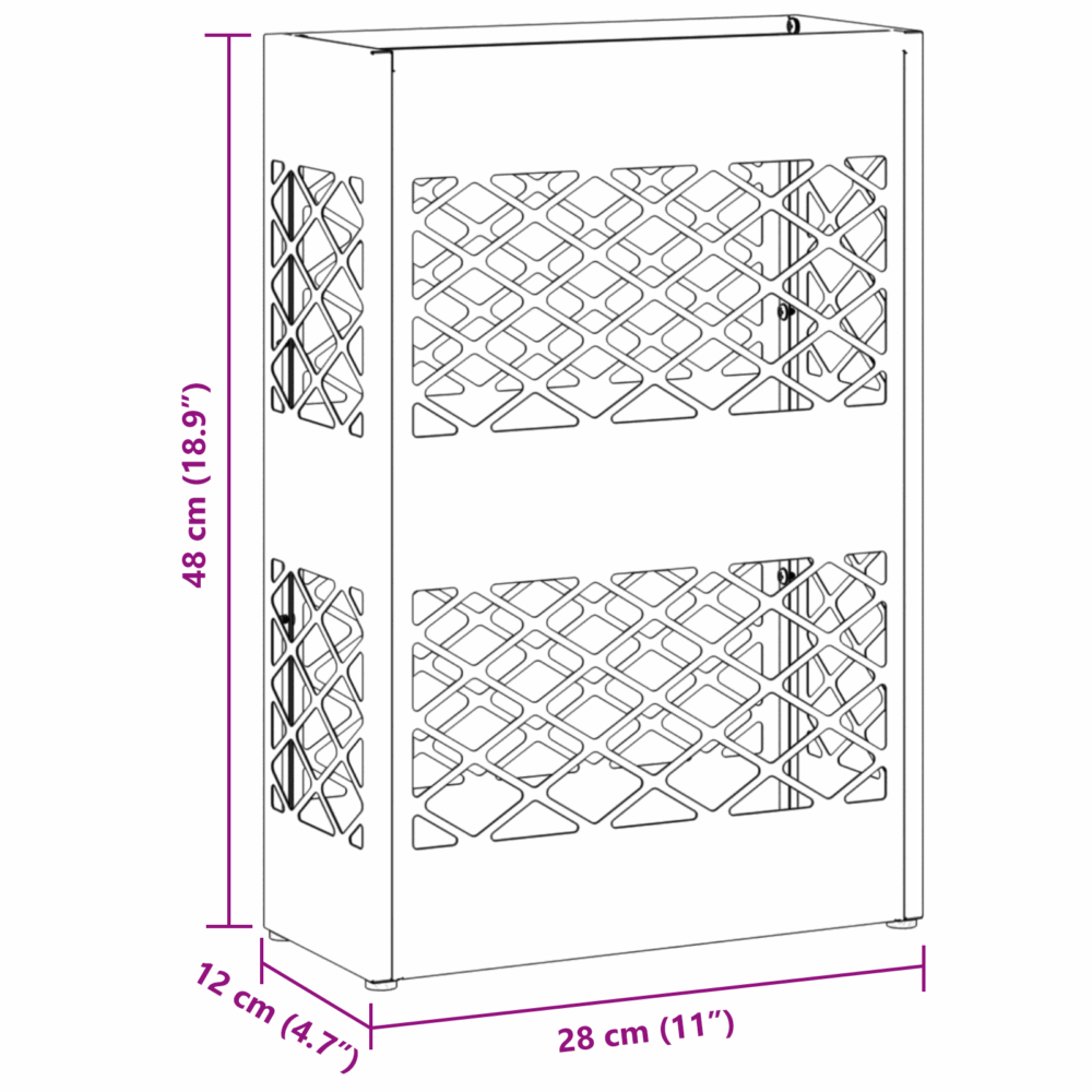O Suporte para Guarda-chuva vidaXL é uma solução prática e estilosa para a entrada. Mantém guarda-chuvas molhados organizados, evitando a bagunça. O formato retangular e o acabamento em verde-azeitona combinam com vários estilos, oferecendo armazenamento prático para outras coisas. Armazenamento Amplo: O suporte combina duas prateleiras de metal, oferecendo espaço suficiente para guarda-chuvas e outros itens, facilitando o acesso. Design Estiloso: Com um padrão cruzado fixe na superfície, acrescenta um toque moderno e prático. Construção Durável: Feito de aço de qualidade com acabamento mate, é estável e não se desgasta facilmente com uso diário. Uso Interno: Feito só para dentro de casa, é ideal para dar funcionalidade ao corredor ou à sala, tornando-se um ótimo complemento. Manutenção Fácil: O acabamento mate não só é bonito, mas também fácil de limpar, mantendo o espaço arrumado.