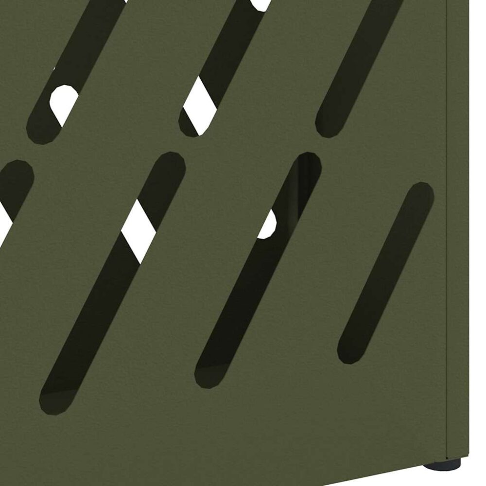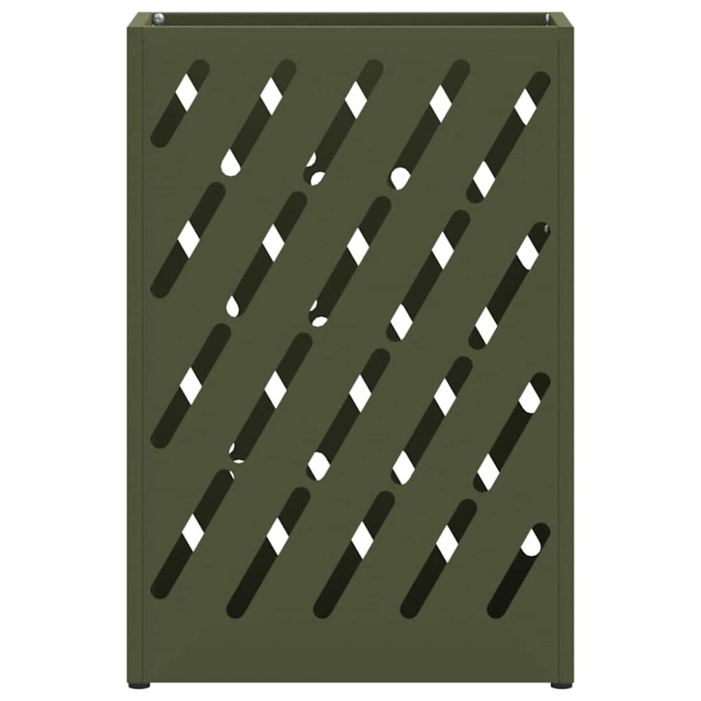 Este Suporte Contemporâneo para Guarda-Chuva oferece uma solução estilosa e prática para a entrada. Garante que guarda-chuvas molhados sejam armazenados de forma organizada, evitando a bagunça. Sua forma retangular e o acabamento em metal verde-azeitona harmonizam com diferentes estilos, oferecendo armazenamento prático para vários itens. Amplo Armazenamento: Este suporte para guarda-chuva tem muito espaço para guarda-chuvas e outros itens como chapéus e cachecóis. Design Elegante: Apresenta um padrão geométrico de linhas diagonais com um toque moderno. Construção Durável: Feito de um aço de alta qualidade, é robusto para o uso diário. Uso Interno: Projetado para uso interno, é perfeito para corredores ou salas de estar. Fácil Manutenção: O acabamento mate tem uma ótima aparência e é fácil de limpar com um pano húmido.