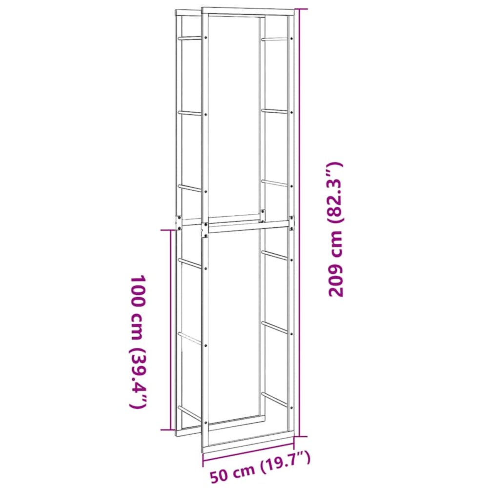 Suporte para lenha 50x30x209 cm aço preto - PORTES GRÁTIS
