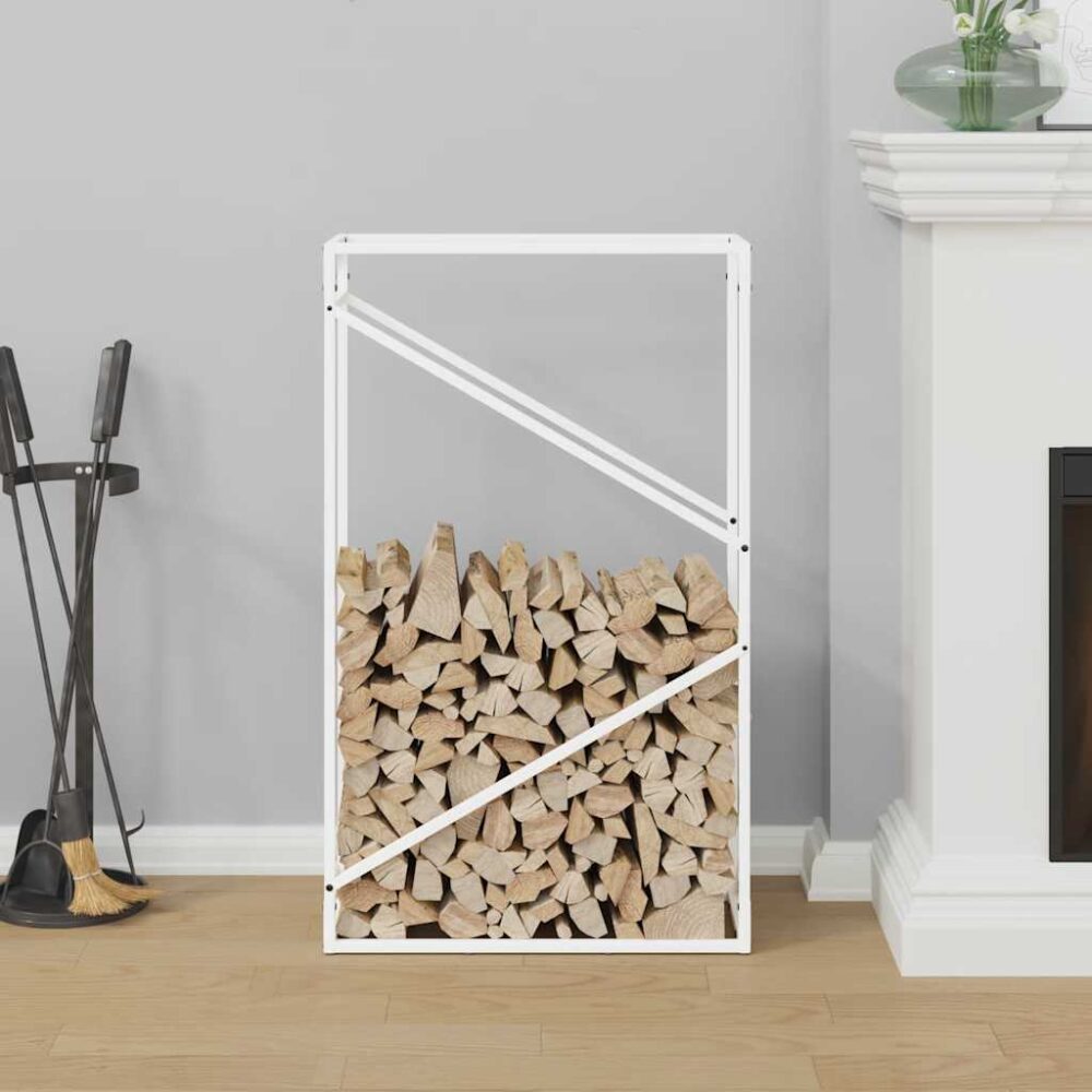 Suporte para lenha 60x25x100 cm aço laminado a frio branco - PORTES GRÁTIS