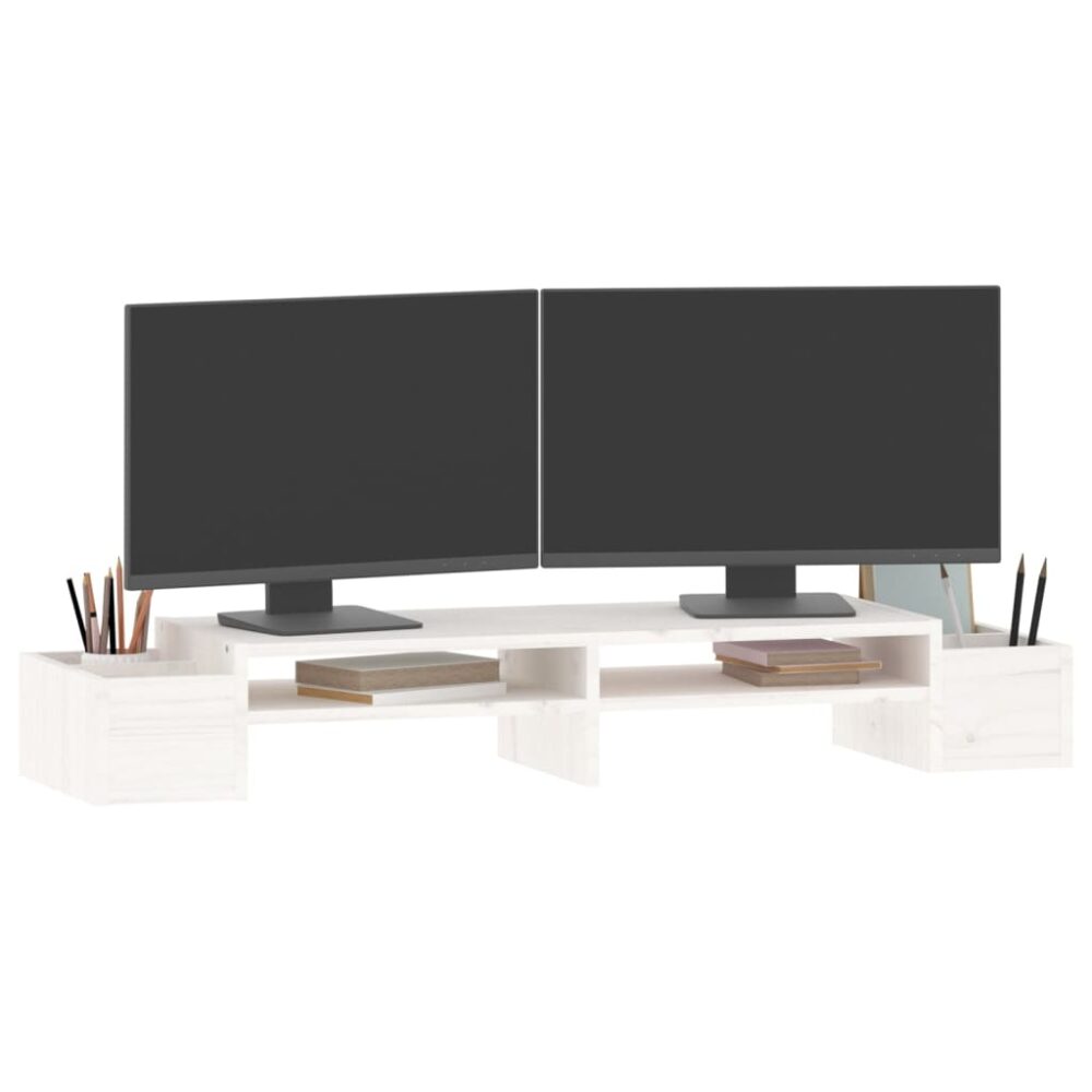 Suporte para monitor 100x27,5x15 cm madeira pinho maciça branco - PORTES GRÁTIS