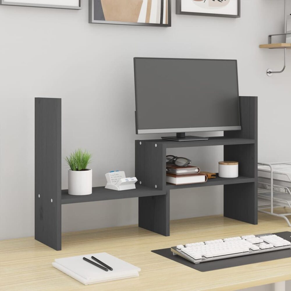 Este clássico suporte para monitor, com um design minimalista, acrescenta um toque bonito ao seu espaço habitacional. Madeira de pinho maciça: a madeira de pinho maciça é um bonito material natural. A madeira de pinho possui um grão reto e os nós dão ao material o seu aspeto rústico.Estrutura estável: a estrutura de madeira deste suporte para computador assegura robustez e estabilidade.Espaço de arrumação: o espaço debaixo do suporte para monitor pode acomodar o seu teclado, leitor de DVD, consola de jogos, dispositivo de transmissão, recetores, suportes multimédia, computadores portáteis, canetas e artigos semelhantes.Função de redução do stress: este suporte para teclado pode ser utilizado como um elevador para o seu monitor e outros dispositivos multimédia. Elevar o seu ecrã reduzirá a tensão no pescoço e costas.Design flexível: o comprimento do suporte para monitor é ajustável. Pode escolher o comprimento adequado, de acordo com as suas necessidades. Nota:Cada produto é fornecido com um manual de instruções na caixa para facilitar a montagem.