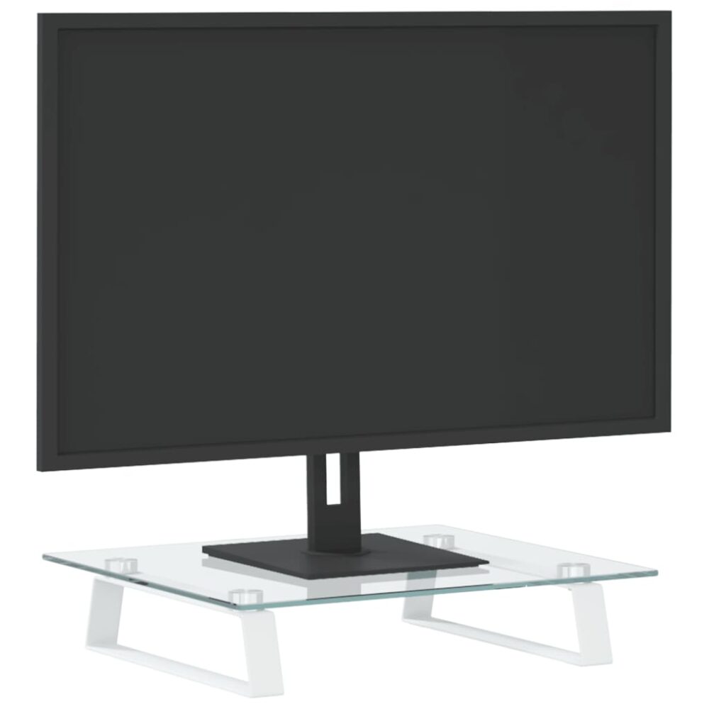 Este prático suporte para monitor com um design minimalista irá adicionar um toque moderno ao seu espaço habitacional. Material durável: o suporte para computador é feito de vidro temperado e metal, o que o torna extremamente robusto e estável.Design ergonómico: o suporte eleva o seu monitor ao nível dos olhos, proporcionando uma experiência de visualização confortável e ergonómica, ao mesmo tempo que alivia a tensão no pescoço, ombros e costas.Arrumação adicional: o espaço de arrumação por baixo deste suporte para monitor pode acomodar o seu teclado, leitor de DVD, consola de jogos, dispositivo de transmissão, recetores, suportes multimédia, computadores portáteis, canetas e artigos semelhantes, pelo que pode organizar melhor a sua secretária e aumentar a sua eficiência.Design de cantos arredondados: com os cantos arredondados e suaves, não precisa de se preocupar com a possibilidade de se magoar no suporte enquanto o utiliza.