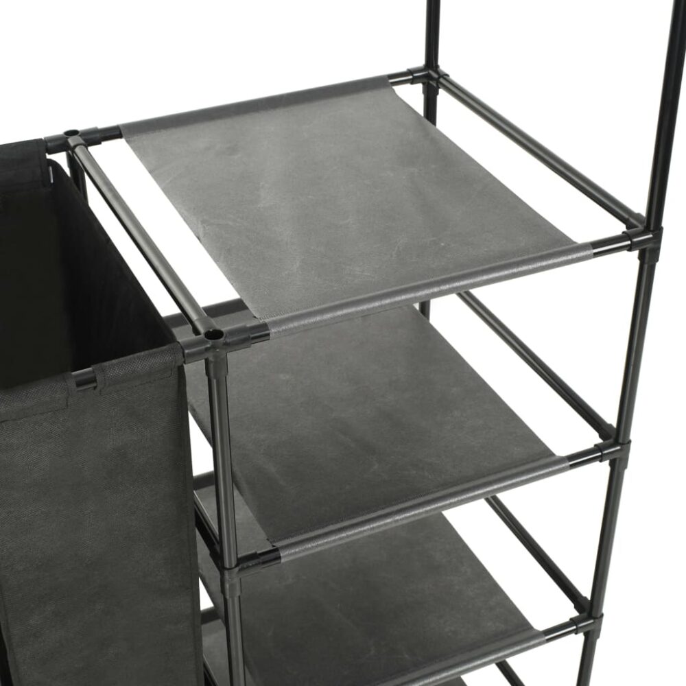 Este suporte para roupas minimalista é uma solução de armazenamento ideal para o quarto ou casa de banho. O organizador de calçado apresenta uma estrutura metálica tubular – leve, mas resistente – que torna a sapateira fácil de movimentar e bastante durável. Tem dois sacos generosos e quatro prateleiras em tecido-não-tecido, concebidos para manter as suas malas, sapatos ou pequenos objetos organizados e ao alcance da mão. Possui ainda quatro braços laterais com ganchos que proporcionam um espaço de armazenamento adicional para as suas roupas mais compridas, tais como casacos e blusões. A montagem é fácil.