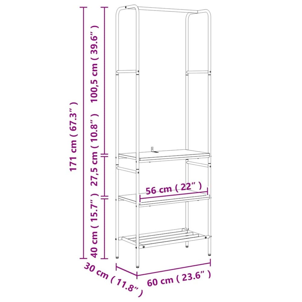 Esse Cabide com Prateleiras Integradas é uma adição inteligente para qualquer lar. Ele é alto e estreito, com um estilo moderno que combina com qualquer ambiente. Oferece bastante espaço para pendurar roupas e ainda conta com prateleiras para sapatos e acessórios, ajudando a organizar a bagunça. A madeira engenheirada dá um toque sofisticado, garantindo que ele seja estável e estiloso para o uso diário. Construção em Madeira Engenheirada – Feito de madeira engenheirada de qualidade, esse cabide é forte para o uso diário. Sua superfície bonita fica ótima em qualquer lugar e ainda mantém suas coisas seguras. O material não se dobra facilmente, então ele permanece em boa forma com o tempo. Prateleiras Integradas – As prateleiras embutidas são ótimas para organizar roupas e acessórios. Além de aproveitar melhor o espaço, facilitam pegar o que você precisa enquanto adicionam estilo ao seu guarda-roupa. Otimização do Espaço Vertical – Com 171 cm de altura e 60 x 30 cm de largura, esse cabide usa bem o espaço vertical sem ocupar muito do piso. Seu design inteligente ajuda a manter tudo em ordem sem ser volumoso. Uso Ideal Interno – Perfeito para ambientes internos, o visual clássico e versátil combina direitinho com a decoração da sua casa. Funciona muito bem em salas de estar ou quartos, sendo um destaque bonito enquanto organiza tudo. Cuidado e Manutenção – Super simples de cuidar. É só passar um pano seco para tirar o pó e ele vai continuar com cara de novo. Montagem é facinha com ferramentas comuns, então é uma escolha popular para qualquer espaço.