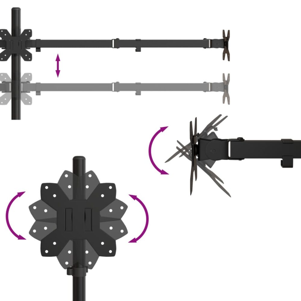 Suporte triplo para monitor VESA 75/100 mm aço preto - PORTES GRÁTIS