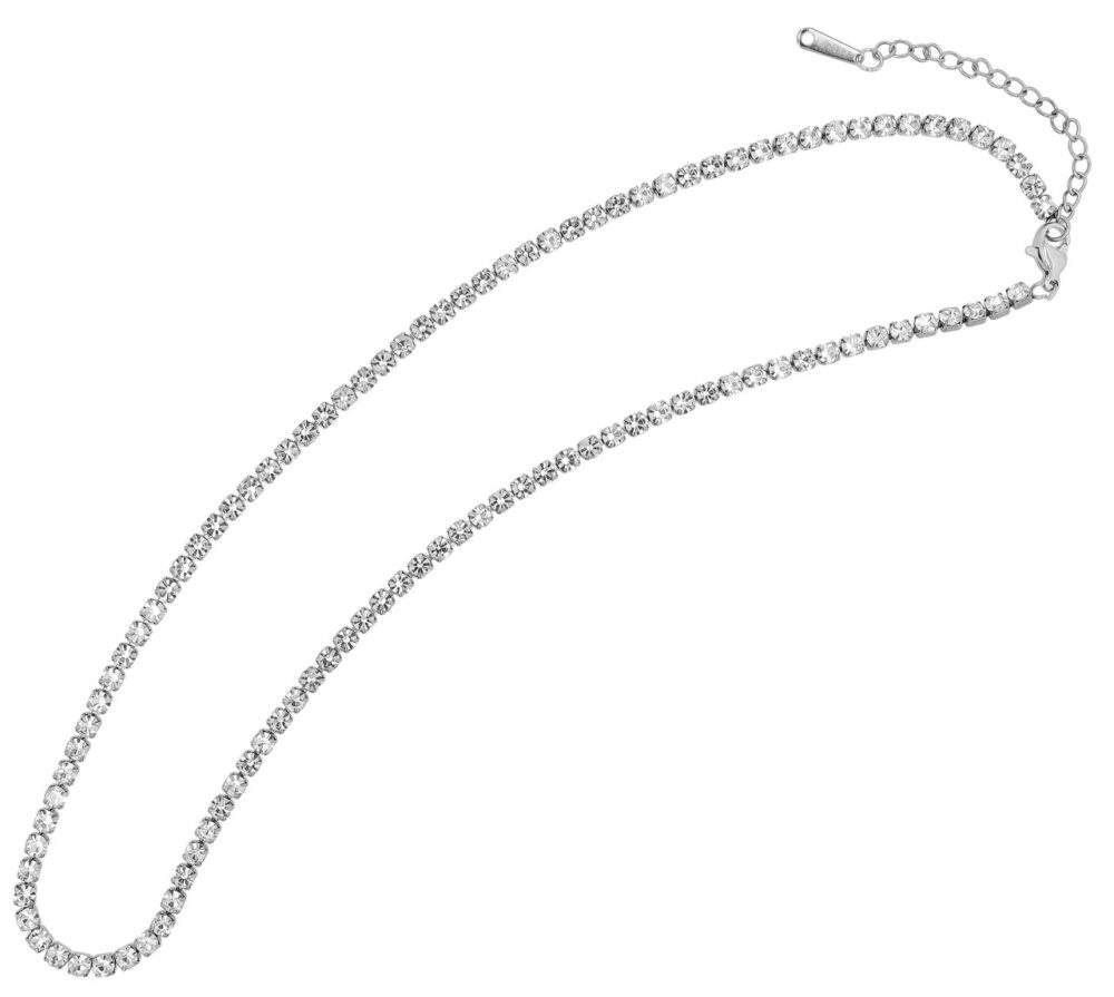 A corrente de ténis “Tabitha” da marca Akzent, feita em aço inoxidável, tem 40 cm de comprimento e extensão de 5 cm. O design simples do colar ganha brilho de tirar o fôlego com as pedras brilhantes. O colar chama a atenção quando usado sozinho em uma ocasião especial ou em um visual moderno em camadas. O mosquetão mais seguro torna a corrente fácil de colocar e retirar.