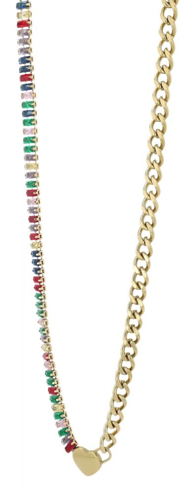 O colar “Talea” combina elegância e design moderno. Uma corrente de ténis com pedras coloridas em forma de baguete de um lado e uma corrente clássica do outro lado. Ambas as partes da cadeia são unidas no meio por um coração sólido. Use o colar no dia a dia com um top simples ou para uma ocasião especial com um vestido de noite, este colar com certeza chamará a atenção no seu decote.