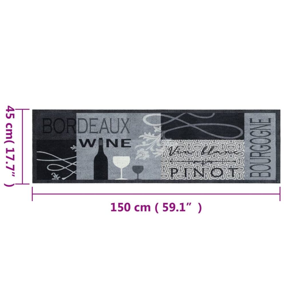 Tapete de cozinha lavável 45x150 cm veludo padrão vinho cinza - PORTES GRÁTIS