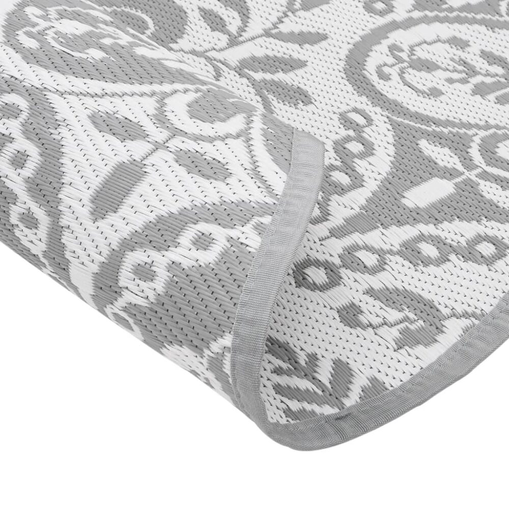 Este tapete de exterior moderno será um excelente complemento decorativo para o seu espaço ao ar livre! Coloque-o na área onde dispõe os lugares de assento, na sua varanda, terraço ou pátio e consiga de imediato um ambiente mais acolhedor. Duradouro e resistente aos raios UV: fabricado em polipropileno (PP), este tapete foi firmemente tecido para uma maior durabilidade, portabilidade e baixa manutenção. Além disso, é resistente aos raios UV, o que evita que desvaneça ou sofra outros danos causados pelo sol.Design reversível: concebido para ser utilizado de ambos os lados, este tapete de jardim possui duas opções para poder combinar a decoração ao seu gosto. Quando um dos lados tem uma mancha, ou se ficar aborrecido com o padrão, pode virá-lo do outro lado para dar ao chão uma aparência renovada.Fácil de limpar: este tapete de exterior é fácil de limpar. Basta sacudir e limpar com um pano húmido, ou enxaguar com uma mangueira e secar ao ar.Portátil e fácil de guardar: graças ao peso leve e às costuras no meio, pode dobrar ou desdobrar livremente o tapete num formato ideal para o transportar e arrumar facilmente quando não estiver a ser utilizado.Amplas aplicações: este tapete de divisão é adequado para utilização interna e externa, incluindo no terraço, pátio, varanda, jardim, etc. Dica útil:Para uma durabilidade e beleza ideais, sugerimos lavar à mão o seu tapete de exterior à temperatura ambiente.
