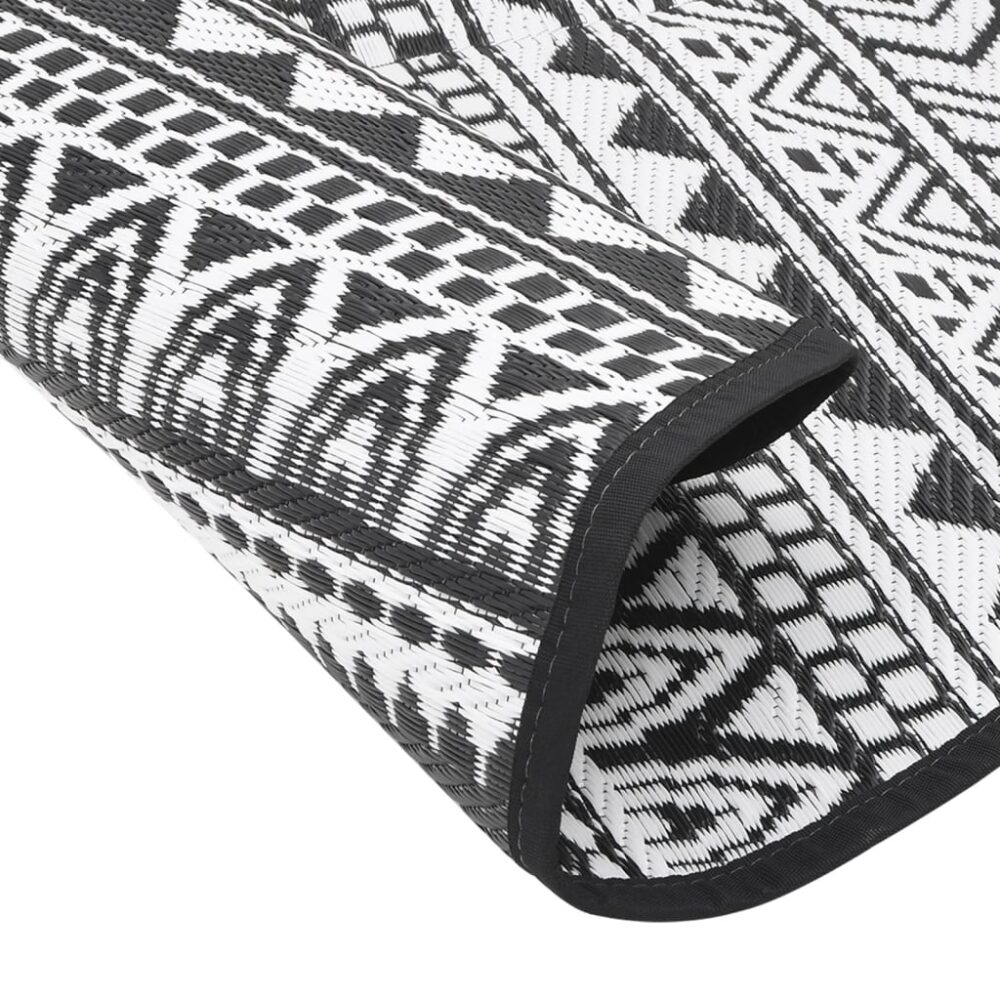 Este tapete de exterior moderno será um excelente complemento decorativo para o seu espaço ao ar livre! Coloque-o na área onde dispõe os lugares de assento, na sua varanda, terraço ou pátio e consiga de imediato um ambiente mais acolhedor. Duradouro e resistente aos raios UV: fabricado em polipropileno (PP), este tapete foi firmemente tecido para uma maior durabilidade, portabilidade e baixa manutenção. Além disso, é resistente aos raios UV, o que evita que desvaneça ou sofra outros danos causados pelo sol.Design reversível: concebido para ser utilizado de ambos os lados, este tapete de jardim possui duas opções para poder combinar a decoração ao seu gosto. Quando um dos lados tem uma mancha, ou se ficar aborrecido com o padrão, pode virá-lo do outro lado para dar ao chão uma aparência renovada.Fácil de limpar: este tapete de exterior é fácil de limpar. Basta sacudir e limpar com um pano húmido, ou enxaguar com uma mangueira e secar ao ar.Portátil e fácil de guardar: graças ao peso leve e às costuras no meio, pode dobrar ou desdobrar livremente o tapete num formato ideal para o transportar e arrumar facilmente quando não estiver a ser utilizado.Amplas aplicações: este tapete de divisão é adequado para utilização interna e externa, incluindo no terraço, pátio, varanda, jardim, etc. Dica útil:Para uma durabilidade e beleza ideais, sugerimos lavar à mão o seu tapete de exterior à temperatura ambiente.