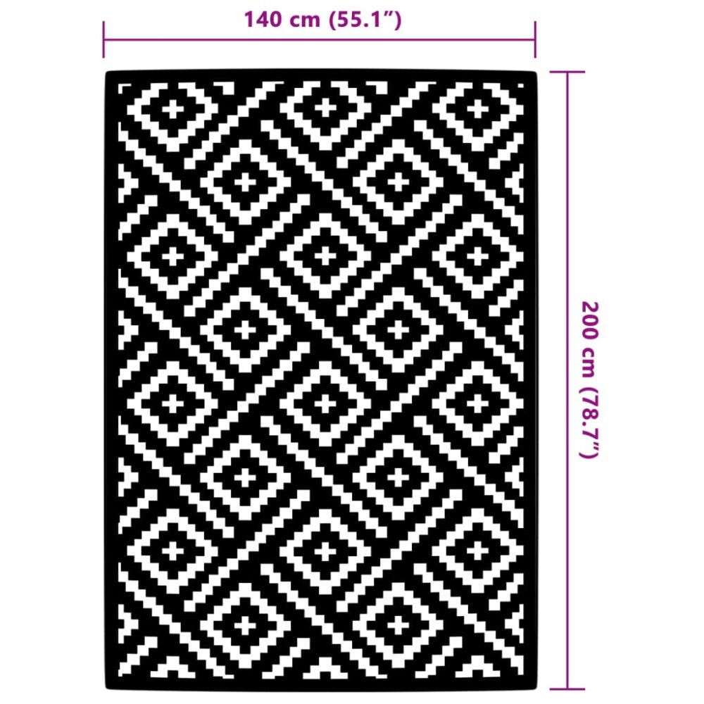 Tapete de exterior Ø160 cm ARAKIL PP Branco e Preto - PORTES GRÁTIS