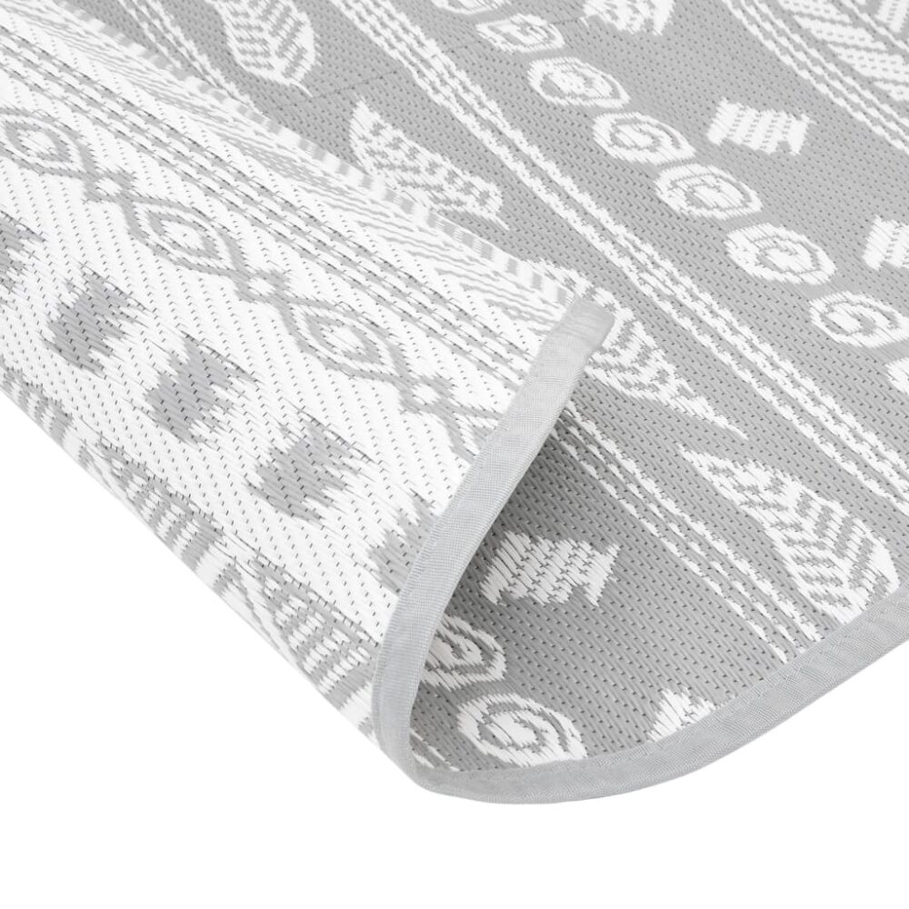 Este tapete de exterior moderno será um excelente complemento decorativo para o seu espaço ao ar livre! Coloque-o na área onde dispõe os lugares de assento, na sua varanda, terraço ou pátio e consiga de imediato um ambiente mais acolhedor. Duradouro e resistente aos raios UV: fabricado em polipropileno (PP), este tapete foi firmemente tecido para uma maior durabilidade, portabilidade e baixa manutenção. Além disso, é resistente aos raios UV, o que evita que desvaneça ou sofra outros danos causados pelo sol.Design reversível: concebido para ser utilizado de ambos os lados, este tapete de jardim possui duas opções para poder combinar a decoração ao seu gosto. Quando um dos lados tem uma mancha, ou se ficar aborrecido com o padrão, pode virá-lo do outro lado para dar ao chão uma aparência renovada.Fácil de limpar: este tapete de exterior é fácil de limpar. Basta sacudir e limpar com um pano húmido, ou enxaguar com uma mangueira e secar ao ar.Portátil e fácil de guardar: graças ao peso leve e às costuras no meio, pode dobrar ou desdobrar livremente o tapete num formato ideal para o transportar e arrumar facilmente quando não estiver a ser utilizado.Amplas aplicações: este tapete de divisão é adequado para utilização interna e externa, incluindo no terraço, pátio, varanda, jardim, etc. Dica útil:Para uma durabilidade e beleza ideais, sugerimos lavar à mão o seu tapete de exterior à temperatura ambiente.