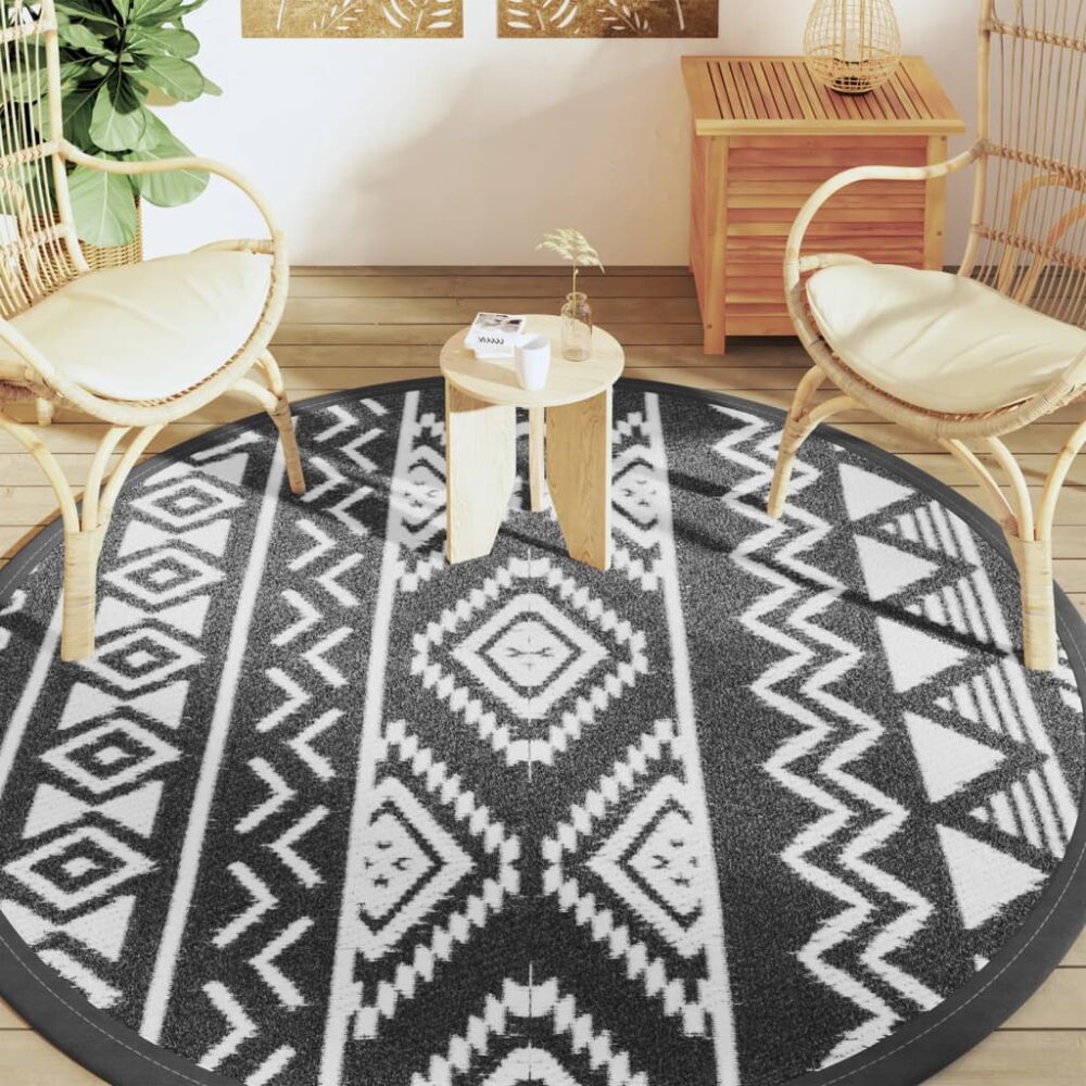 Este tapete de exterior moderno será um excelente complemento decorativo para o seu espaço ao ar livre! Coloque-o na área onde dispõe os lugares de assento, na sua varanda, terraço ou pátio e consiga de imediato um ambiente mais acolhedor. Duradouro e resistente aos raios UV: fabricado em polipropileno (PP), este tapete foi firmemente tecido para uma maior durabilidade, portabilidade e baixa manutenção. Além disso, é resistente aos raios UV, o que evita que desvaneça ou sofra outros danos causados pelo sol.Design reversível: concebido para ser utilizado de ambos os lados, este tapete de jardim possui duas opções para poder combinar a decoração ao seu gosto. Quando um dos lados tem uma mancha, ou se ficar aborrecido com o padrão, pode virá-lo do outro lado para dar ao chão uma aparência renovada.Fácil de limpar: este tapete de exterior é fácil de limpar. Basta sacudir e limpar com um pano húmido, ou enxaguar com uma mangueira e secar ao ar.Portátil e fácil de guardar: graças ao peso leve e às costuras no meio, pode dobrar ou desdobrar livremente o tapete num formato ideal para o transportar e arrumar facilmente quando não estiver a ser utilizado.Amplas aplicações: este tapete de divisão é adequado para utilização interna e externa, incluindo no terraço, pátio, varanda, jardim, etc. Dica útil:Para uma durabilidade e beleza ideais, sugerimos lavar à mão o seu tapete de exterior à temperatura ambiente.