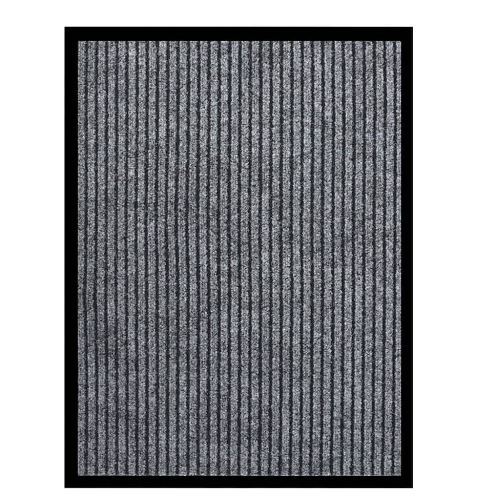 Tapete de porta às riscas 60x80 cm cinzento - PORTES GRÁTIS