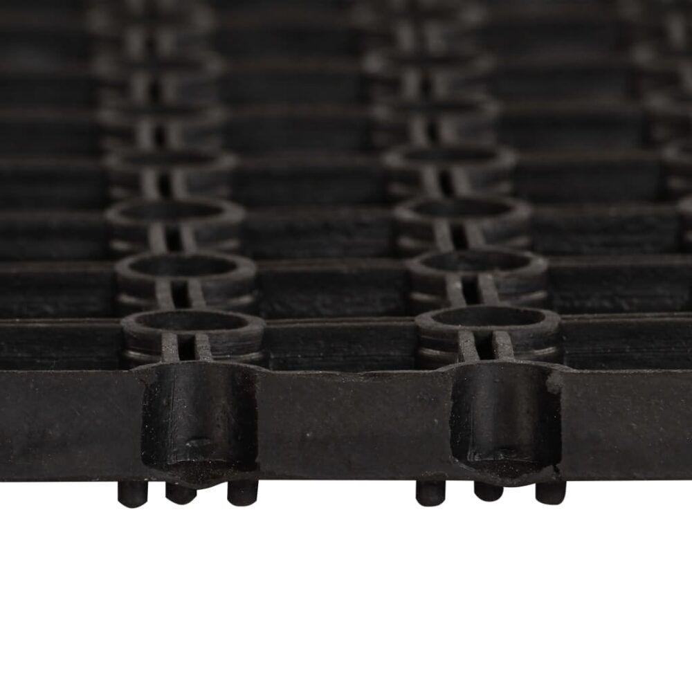 Coloque este tapete de porta em borracha na sua entrada e mantenha a sujidade no exterior! Material durável: o tapete para porta de entrada é feito de borracha flexível, que absorve os choques e é resistente ao desgaste, garantindo durabilidade e resistência a manchas.Design antiderrapante: este tapete de entrada tem pontos elevados e uma textura nervurada para uma melhor aderência e estabilidade, evitando eficazmente qualquer eventualidade de poder escorregar durante a utilização.Função de drenagem: este tapete de borracha para porta foi concebido com orifícios de drenagem que ajudam a escoar a lama, a água da chuva ou as manchas de água dos sapatos. Além disso, é fácil de limpar – basta enxaguar com água!Amplas aplicações: este tapete de borracha pode ser usado tanto no interior como no exterior, tal como em bares, cozinhas, restaurantes, armazéns, jardins e outras áreas industriais húmidas e densamente povoadas.