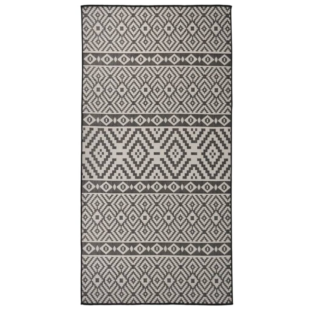 Tapete de tecido plano para exterior 100x200 cm riscas pretas - PORTES GRÁTIS