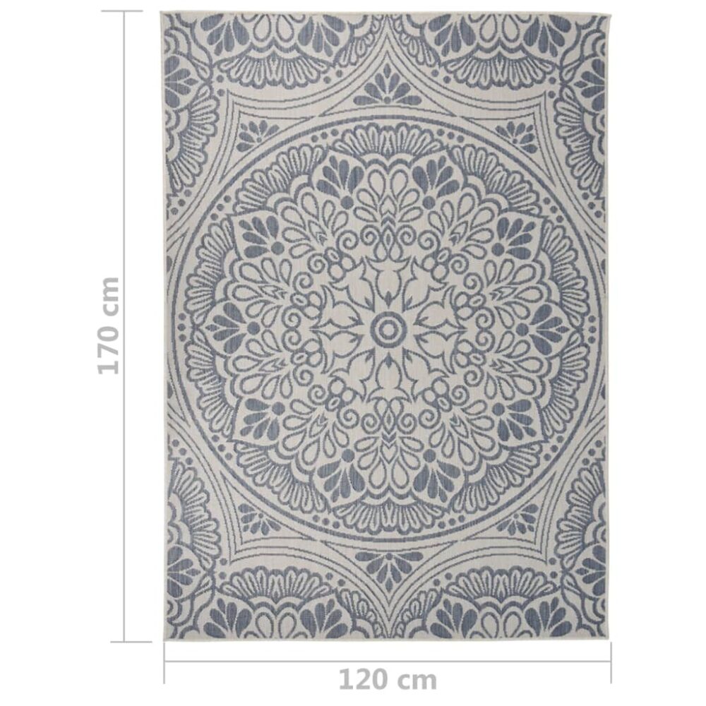 Tapete de tecido plano para exterior 120x170 cm padrão azul - PORTES GRÁTIS