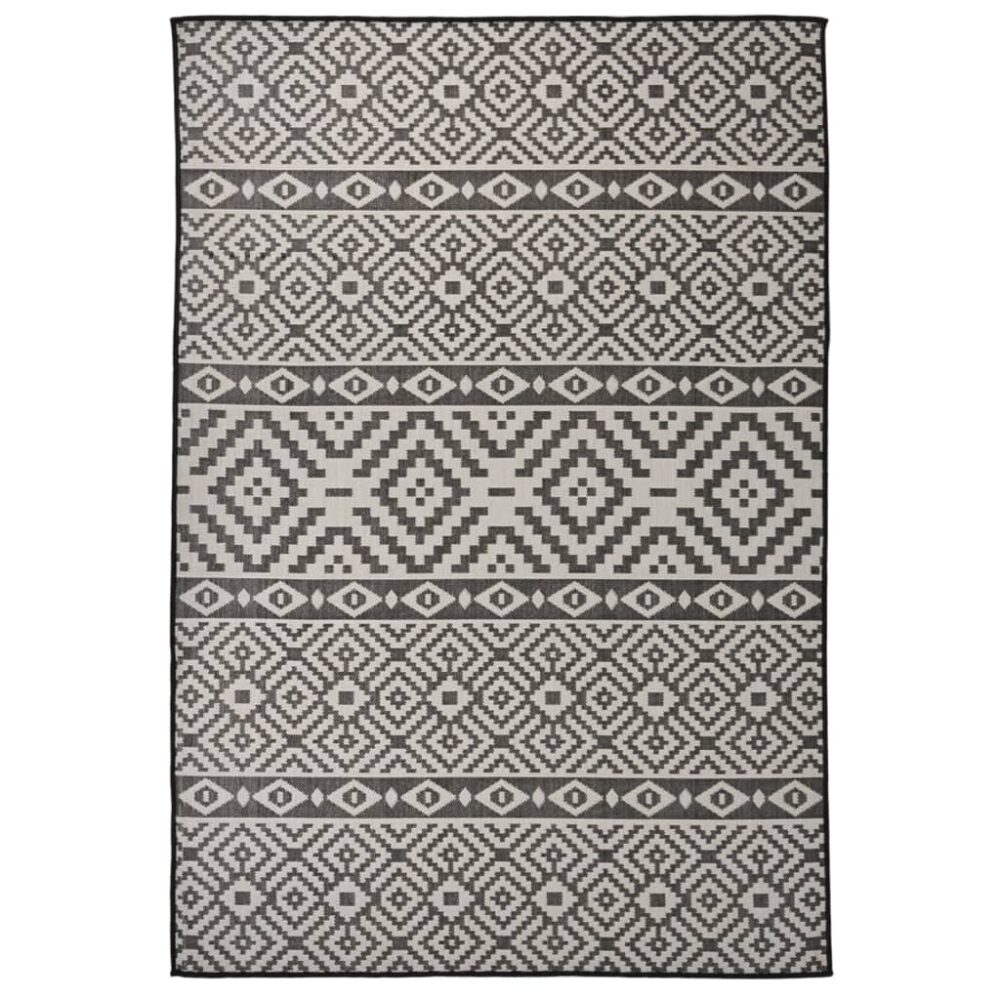 Tapete de tecido plano para exterior 160x230 cm riscas pretas - PORTES GRÁTIS