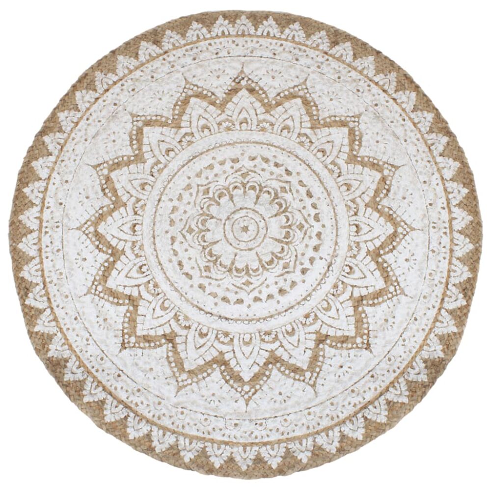 Dê ao seu interior um toque natural com este tapete em juta trançada! É a escolha perfeita para decorar a sua divisão enquanto protege os seus pavimentos. Material de qualidade: o tapete é feito em 100% juta. A juta é um material muito durável, naturalmente resistente e de baixa manutenção.Tapete feito à mão: o tapete redondo foi tecido à mão por hábeis artesãos, com uma destreza excecional. Dada a sua textura atraente e Mandala estampada, adaptar-se-á perfeitamente à decoração da sua casa.Tapete versátil: o tapete é versátil o suficiente para ser utilizado sozinho ou como base para a colocação de camadas. O tapete perfeito para abrilhantar a sua sala de estar, quarto ou vestíbulo. Nota:Cada tapete é único. Podem ocorrer variações na cor e design dada a natureza artesanal do produto. A entrega é aleatória, assegurando a exclusividade e individualidade do seu produto.O tapete é dobrado numa caixa de cartão para facilitar o transporte. Deverá aguardar algum tempo até que o produto fique perfeitamente esticado e plano.