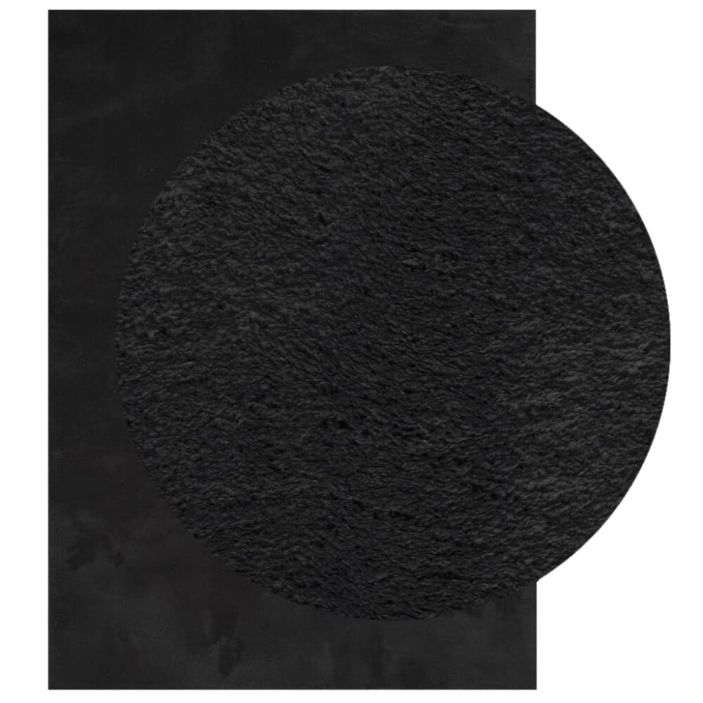 Tapete pelo curto macio e lavável HUARTE 160x230 cm preto - PORTES GRÁTIS