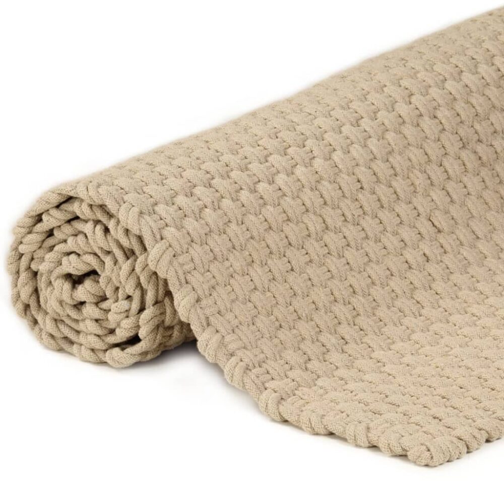 Dê ao seu interior um toque acolhedor com este tapete suave de algodão! É a escolha perfeita para decorar a sua divisão enquanto protege os seus pavimentos. Material prático: o tapete é feito de corda pesada de algodão. Proporciona-lhe uma sensação de suavidade e frescura quando anda descalço em cima dele, protegendo ao mesmo tempo o seu chão.Aparência estética: com o seu design distinto em tecido de corda, o tapete cria maravilhosamente uma decoração interior acolhedora e harmoniosa.Uso versátil: o tapete é versátil o suficiente para ser utilizado sozinho ou como base para a colocação de camadas. O tapete perfeito para destacar a sua sala de estar, quarto ou vestíbulo. Nota:O tapete é embalado em rolo e/ou dobrado para facilitar o transporte. Deverá aguardar algum tempo até que o produto fique perfeitamente esticado e plano.